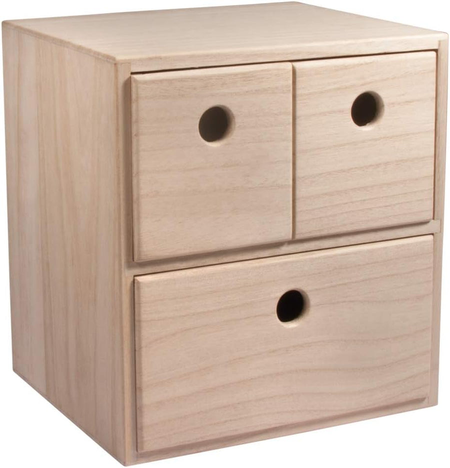 Rayher 62908505 Holzkommode mit 3 Schubladen, 21 x 18 x 23 cm, FSC zertifiziert, Schubladenbox, Natu