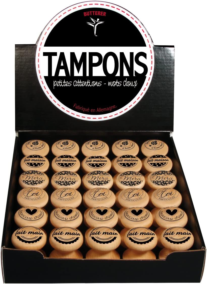 Rayher Display Stempel "Cadeaux", französisch, 6 Stempelmotive Thema Schenken, pro Motiv 5 Stempel,