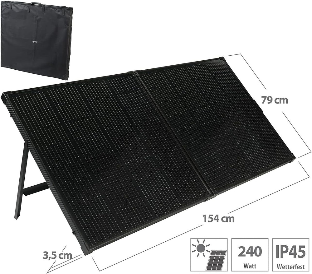 revolt Photovoltaik: Faltbares Solarpanel mit monokristallinen Zellen, 240 Watt, schwarz (Solarpanel