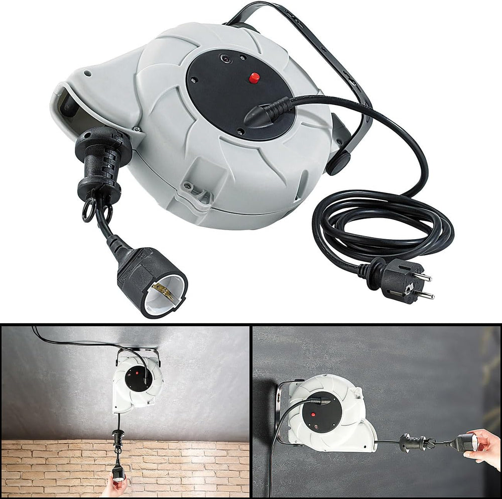 revolt Kabel Aufroller: 9 Meter Kabeltrommel zur Festmontage an Wand & Decke (Automatische Kabeltrom