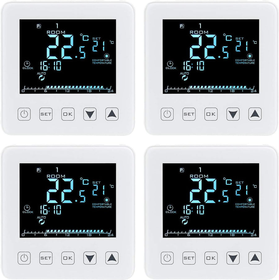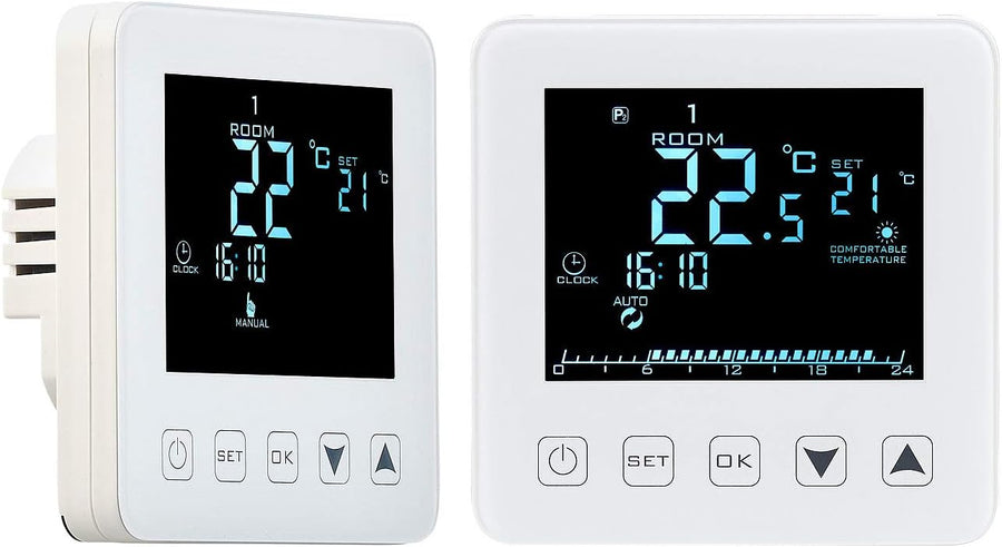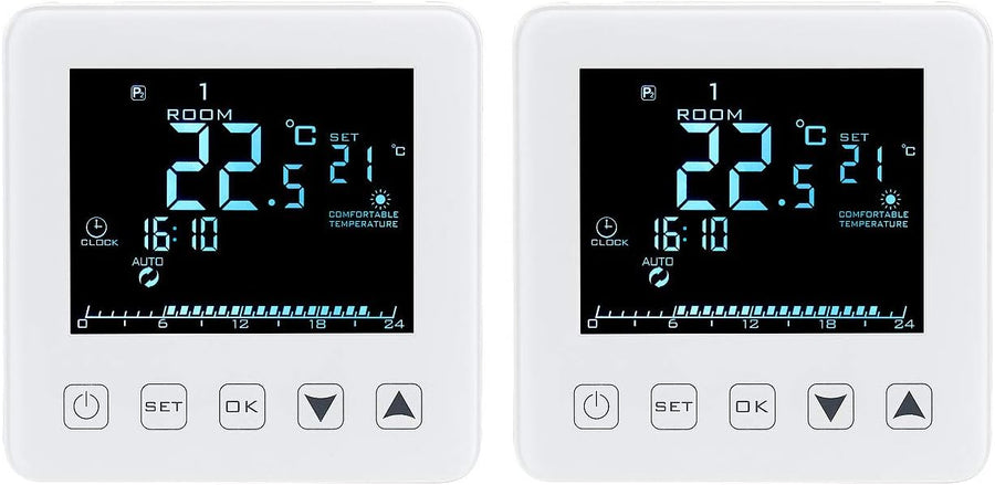 revolt Raumthermostat Digital: 2er-Set Wand-Thermostate für Fussbodenheizung, LCD, Touch-Tasten (The