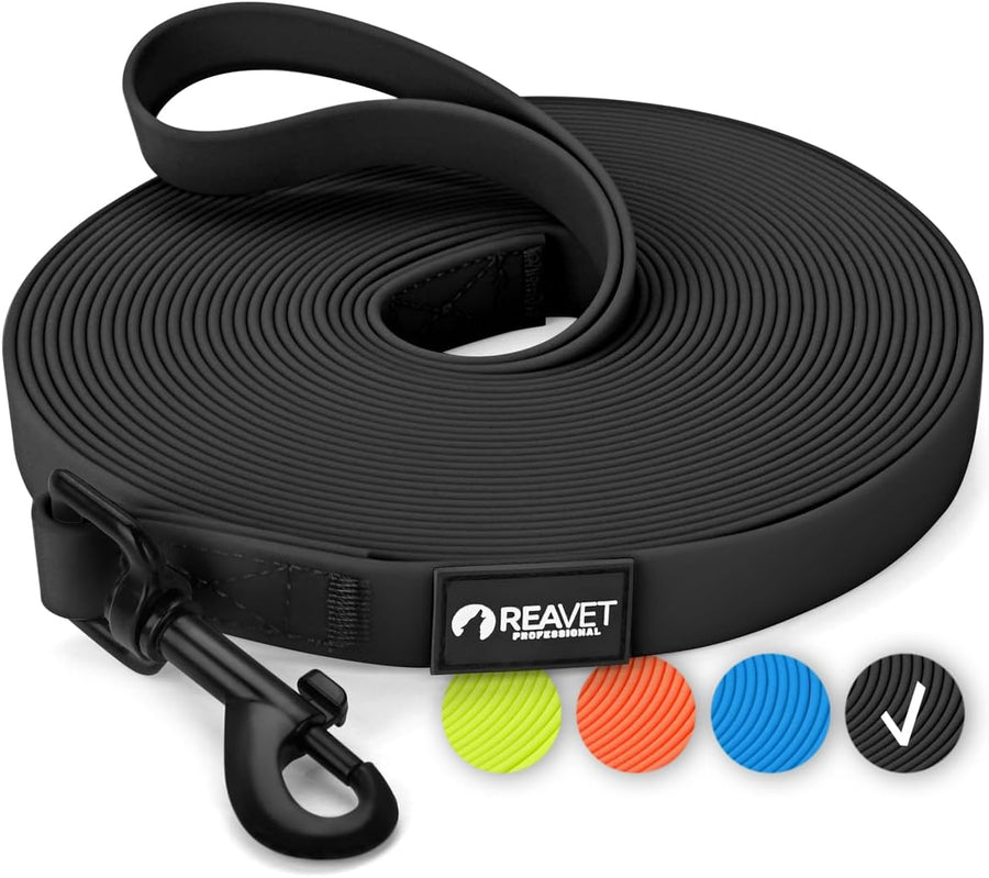 ReaVET Schleppleine für Hunde 10 Meter, Schwarz I Robuste & wasserfeste Hundeleine lang I Übungslein