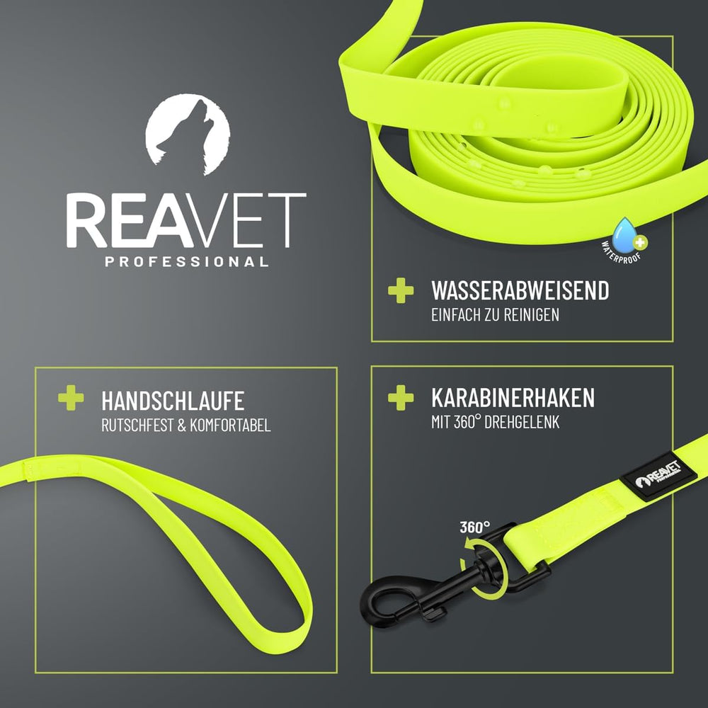 ReaVET Schleppleine für Hunde 10 Meter, Neon Gelb I Robuste & wasserfeste Hundeleine lang I Übungsle