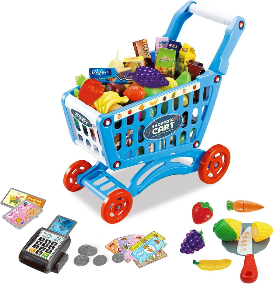 RedCrab Kinder Einkaufswagen Spielset, 54 Stück Kaufladen Zubehör Set, Übergrösse Rollenspiel Trolle