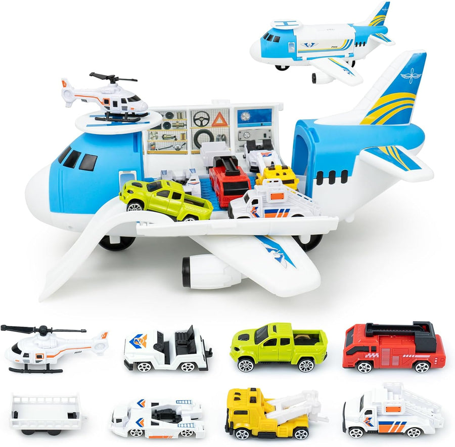 RedCrab Flugzeug Spielset, Transport Flugzeug Spielzeug mit Auto Helikopter und Rampe, Kinder Fahrze