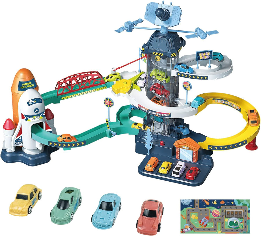 RedCrab Rennbahn Spielzeug für Kinder, Weltraumbahn Auto Abenteuer Spielset mit 4 Mini-Autos für 3 J