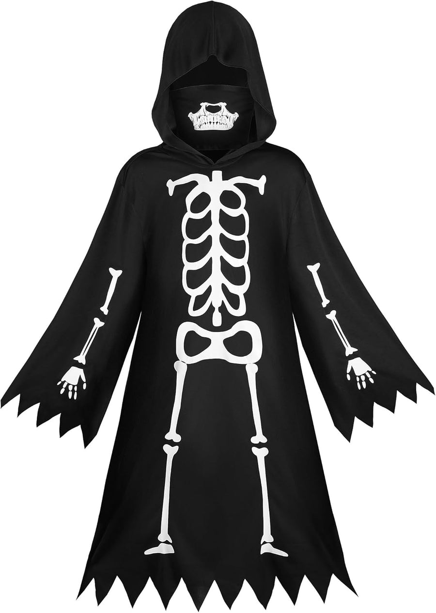 ReliBeauty Skelett Kostüm Kinder Jungen Mädchen Leuchtend Halloween, Multicolored 152 (Etikett150)