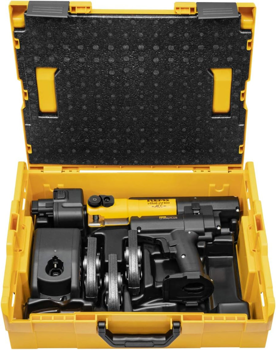 Rems Mini-Press (14V ACC SET M 15+18+22, L-BOXX, Presszangen, mit 2 schwenkbaren Monoblock-Pressback
