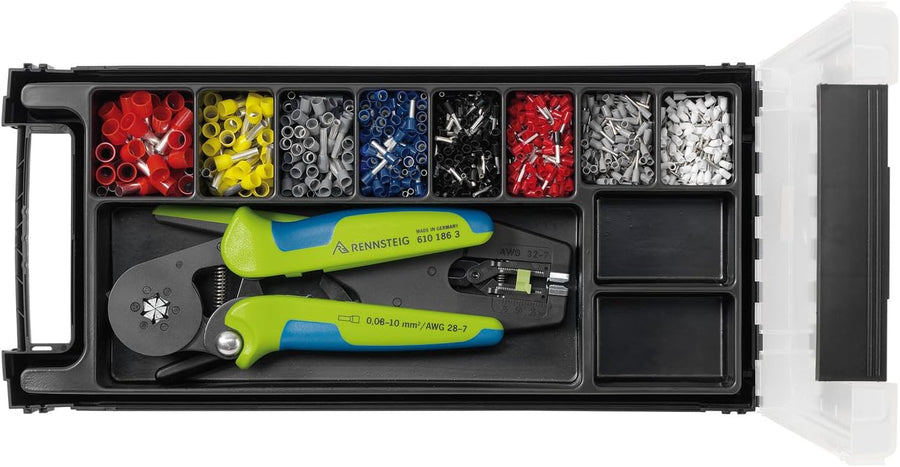Rennsteig Aderendhülsen (Kabelschuhe) Set, Crimpzange, Abisolierzange - 0,5; 0,75; 1; 1,5; 2,5; 4; 6