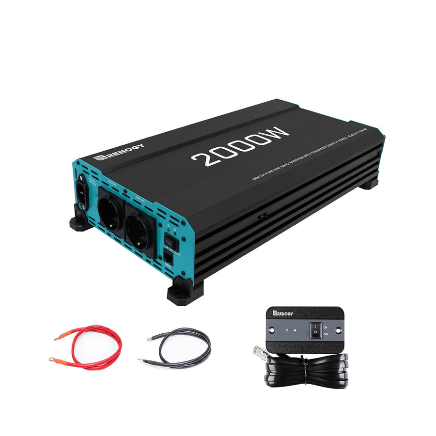 Renogy 1000W/2000W Reiner Sinus Wechselrichter mit Netzvorrangschaltung, 12V zu 230V Spannungswandle