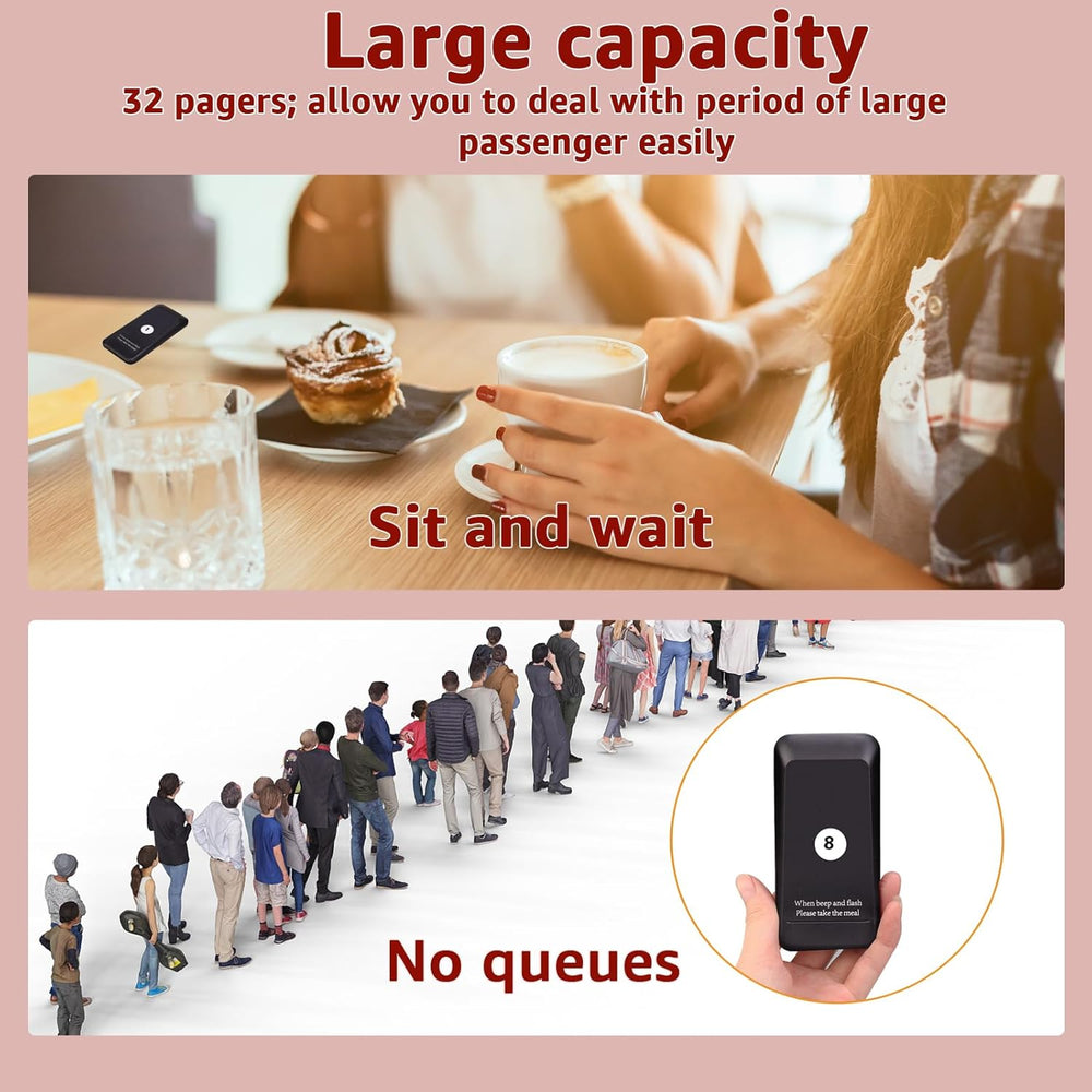 Retekess TD157 Pager Rufsystem, 32 Pager, 300mAh Batterie, 1-99s Rufdauer, Play and Play, einfach zu