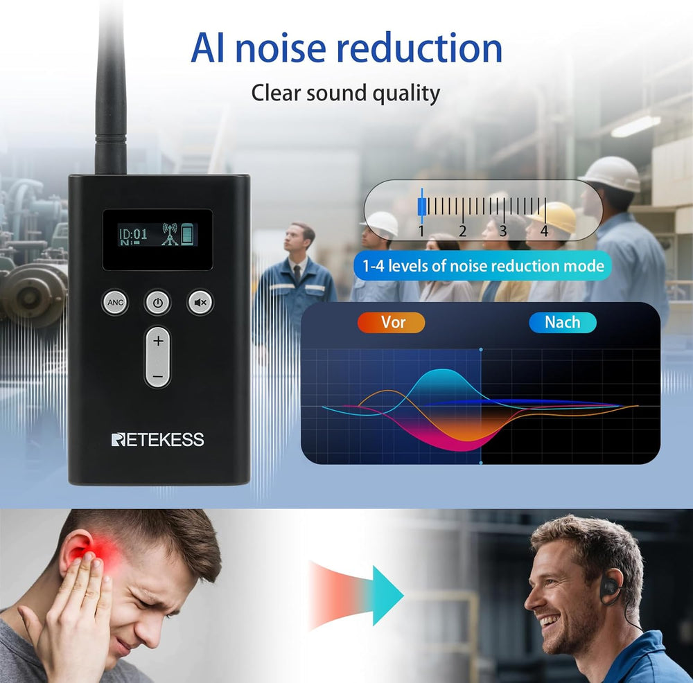 Retekess T130P (T130 3rd) Kabelloses Tour Guide System-Headsets, Verbesserte Geräuschreduzierung, 16
