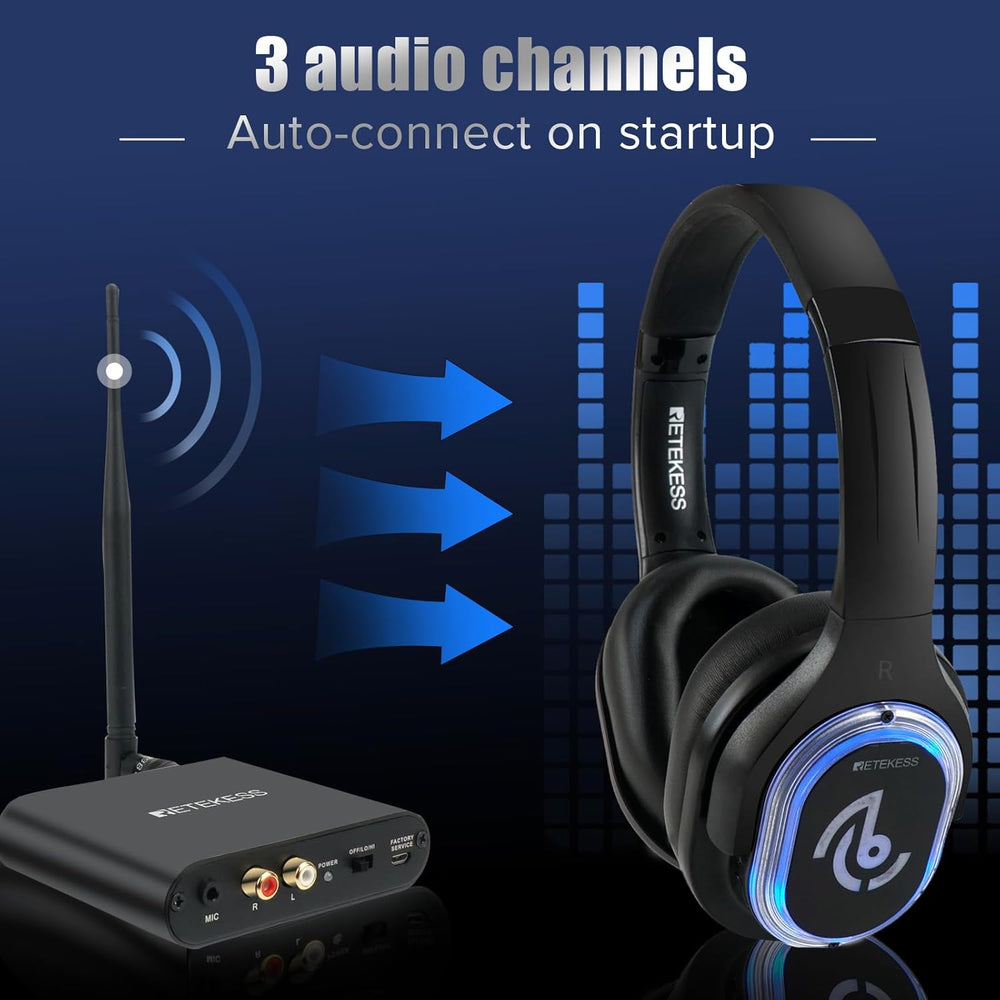 Retekess TA004 Silent Disco Kabelloser Kopfhörer, 3 Kanäle optional, HiFi-Stereo-Audio-Receiver-Kopf