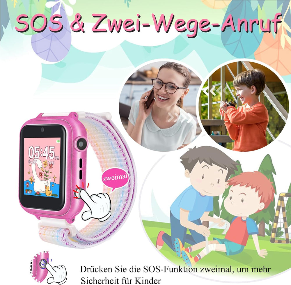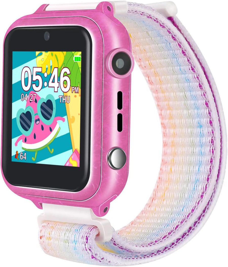 Retysaz Smartwatch Kinder, Spiele, Telefon für Mädchen und Jungen (Rosa-A1), Rosa-A1