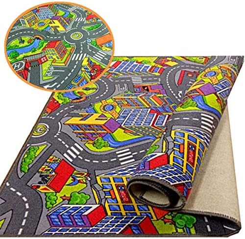 Kinderteppich Spielteppich Strassenteppich Stadt Kinderzimmer Häuser Auto Teppich für Jungen und Mäd