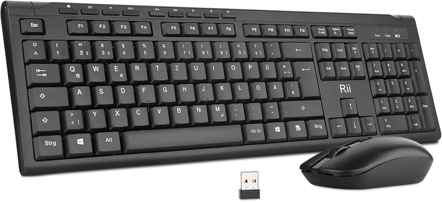 Rii Tastatur Maus Set kabellos, Funktastatur mit Maus, Wireless Keyboard and Mouse, Für PC/Laptop/Wi
