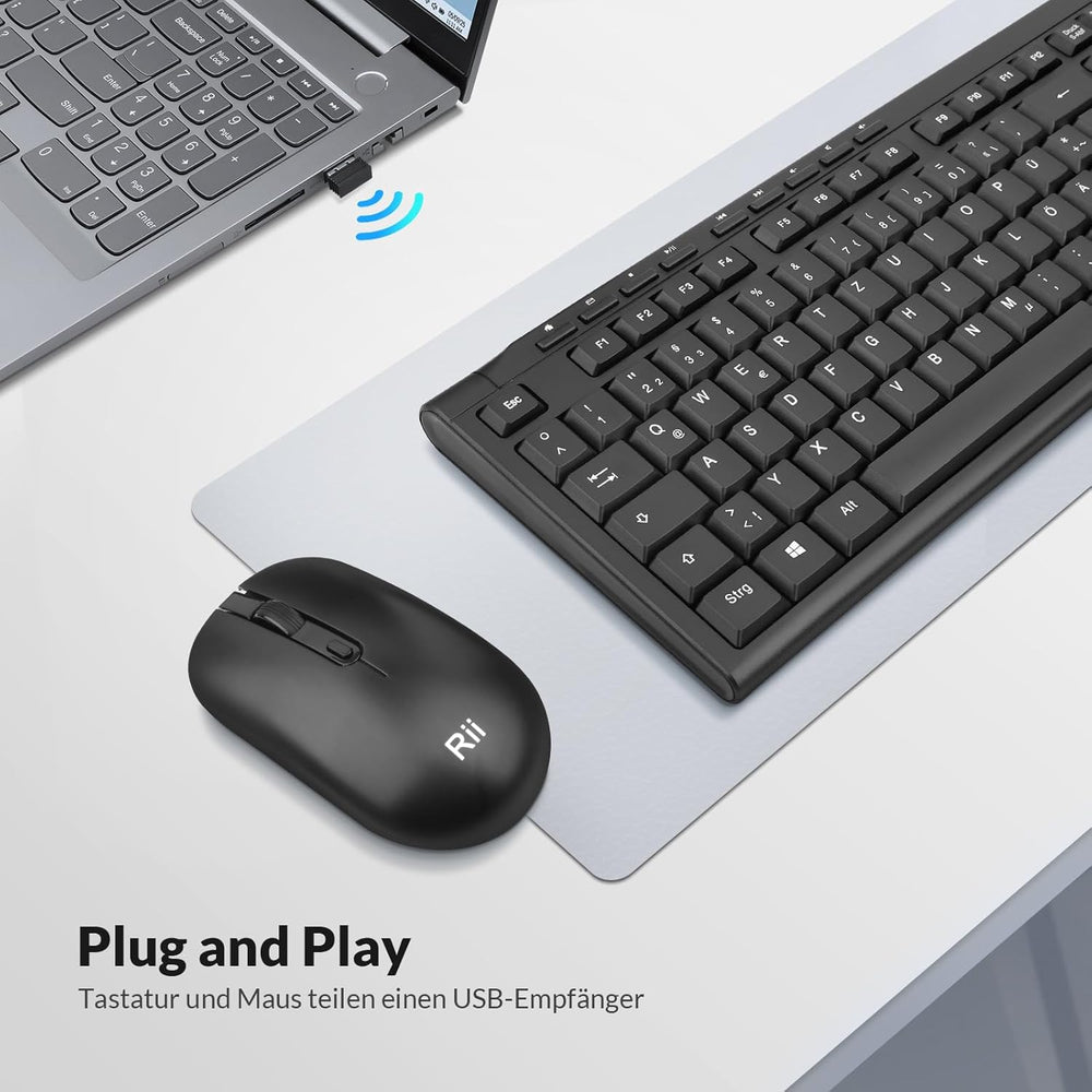 Rii Tastatur Maus Set Kabellos, 2.4 GHz Leise Funktastatur mit Maus, Wireless Keyboard and Mouse, fü