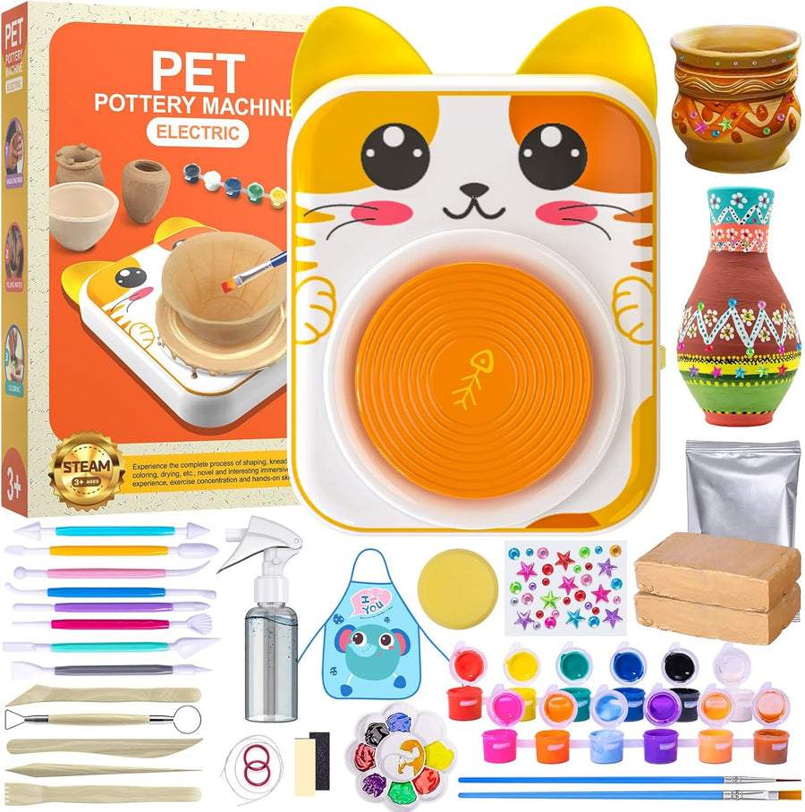 Roaxkois Elektrische Töpferscheibe für Kinder – DIY Töpferset mit Ton, Farben, Werkzeug, Schürze & A