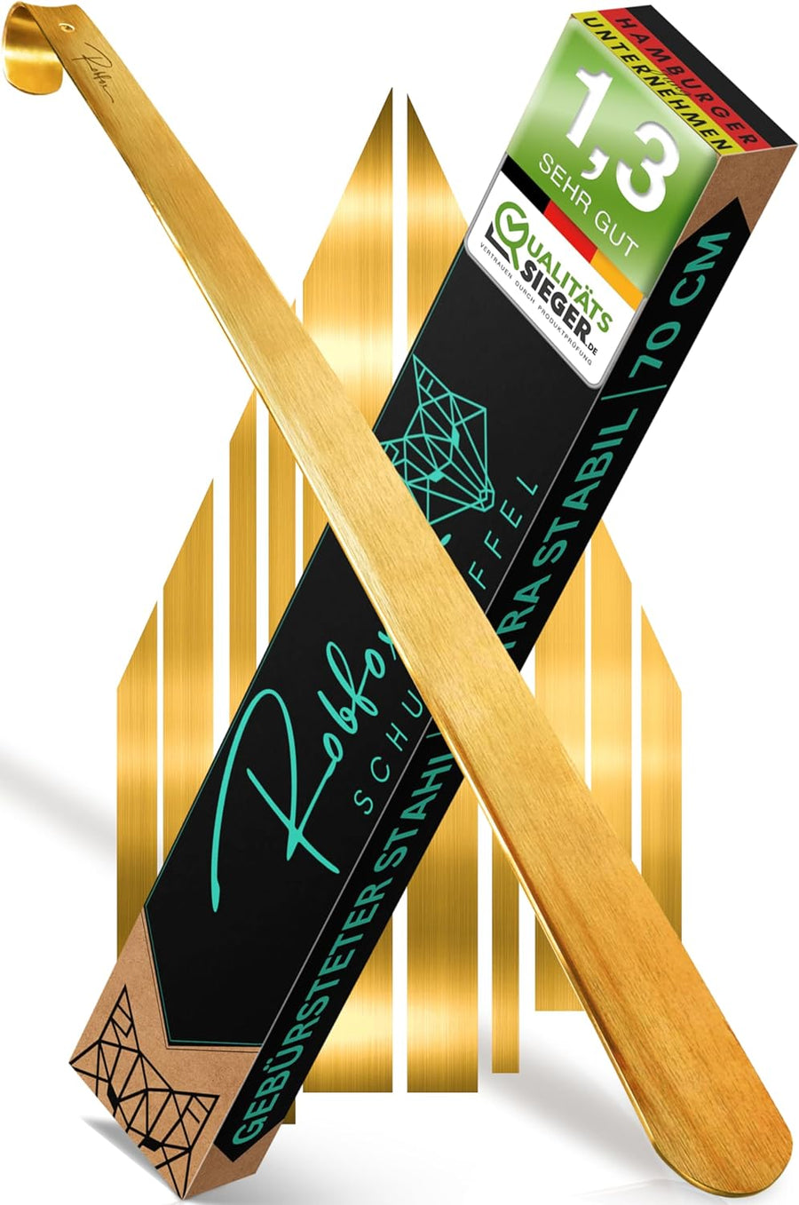 Robfox 70cm Schuhlöffel I extra stabiler Schuhanzieher aus gebürstetem Stahl I 70 cm lange Schuhanzi