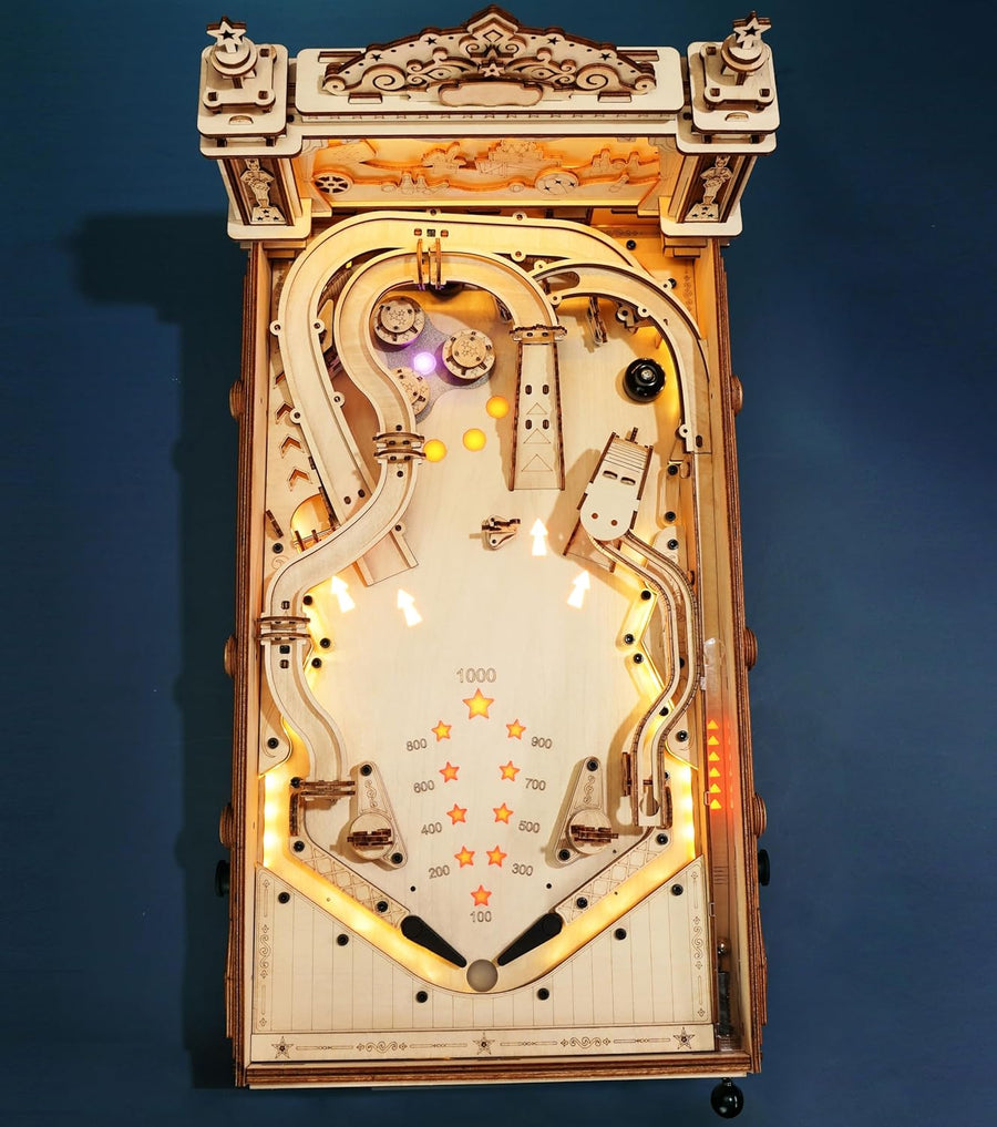 ROBOTIME 3D Puzzle Pinball Flipperautomat Modellbausatz Holz für Erwachsene, DIY Flipper Bausatz Spi