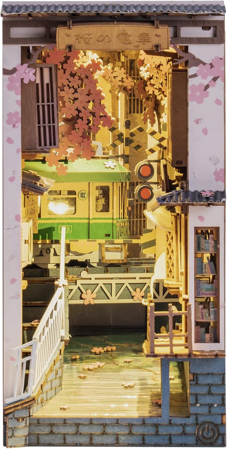 ROBOTIME Book Nook Kits, Sakura Densya Puppenhaus, DIY Miniatur Haus, 3D Wandbehang Puzzle Haus Mode