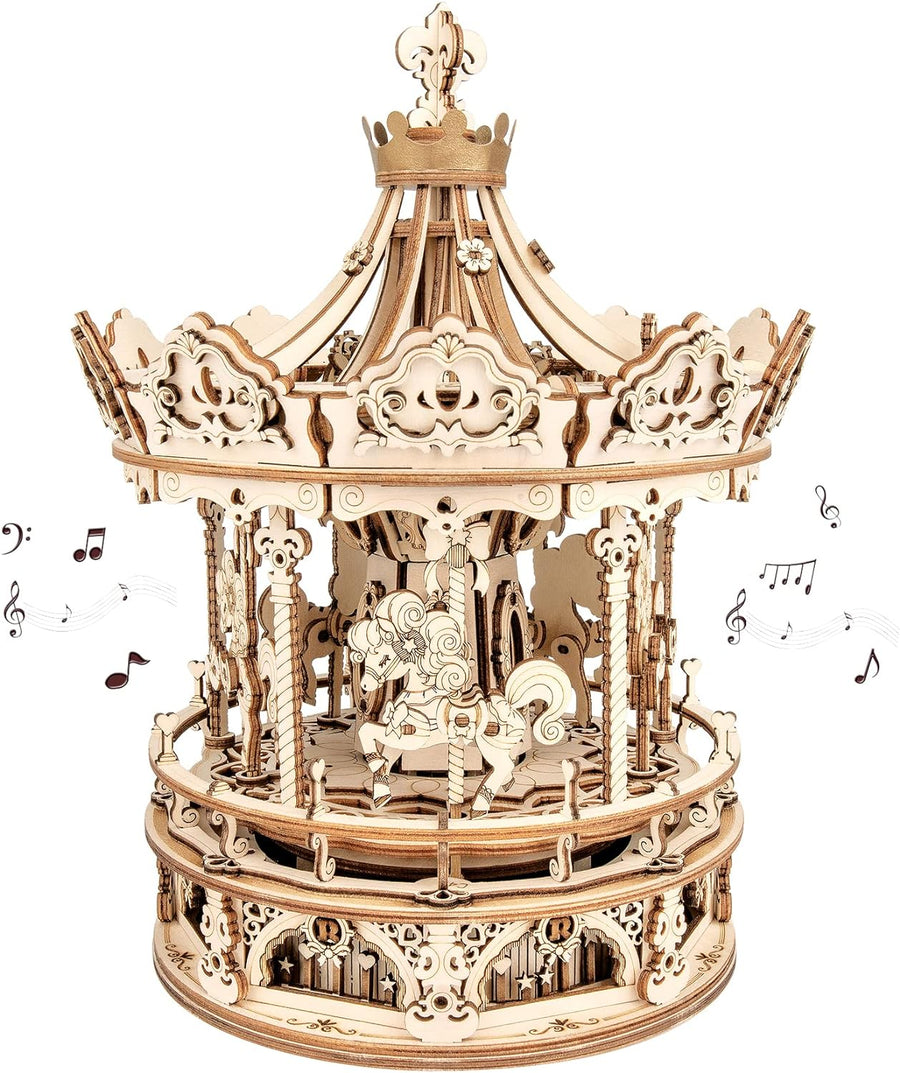 Robotime 3D Puzzle Holz Karussell, Laser-Cut Modellbausatz für Erwachsene, DIY Geschenk für Weihnach