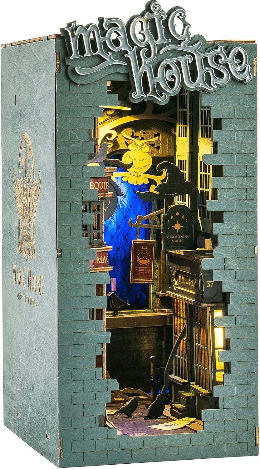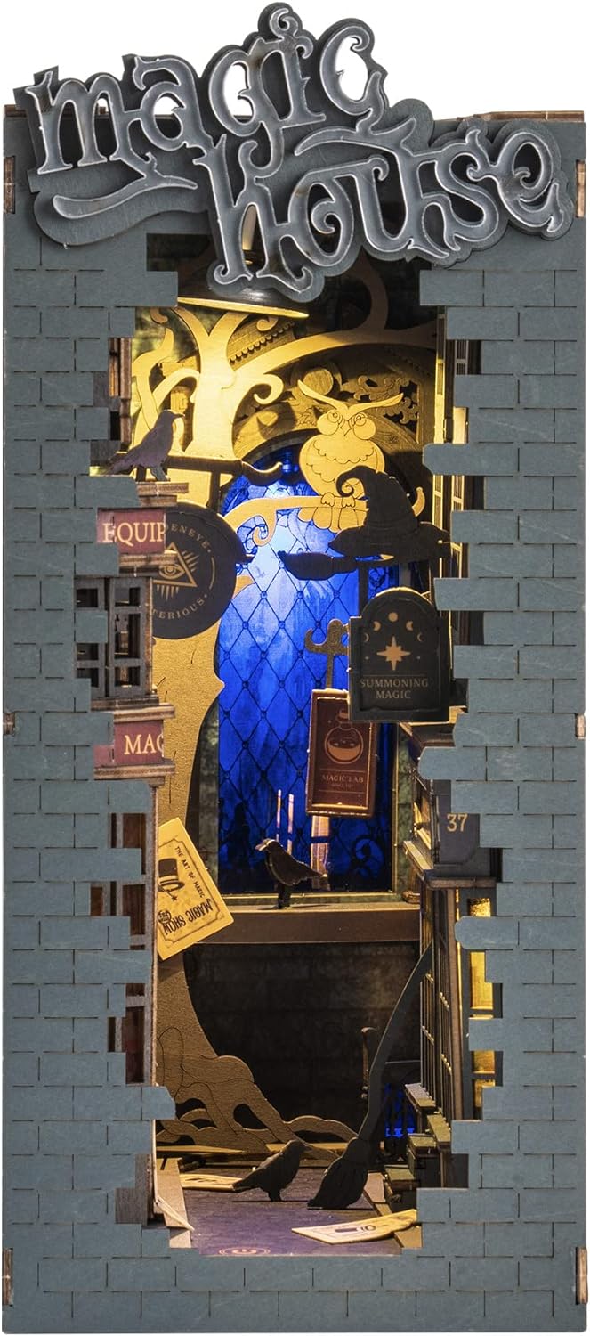 ROBOTIME 3D Bücherstand Holz Puppenhaus Miniaturraum mit Möbeln und Zubehör Bastelsets (Magisches Ha