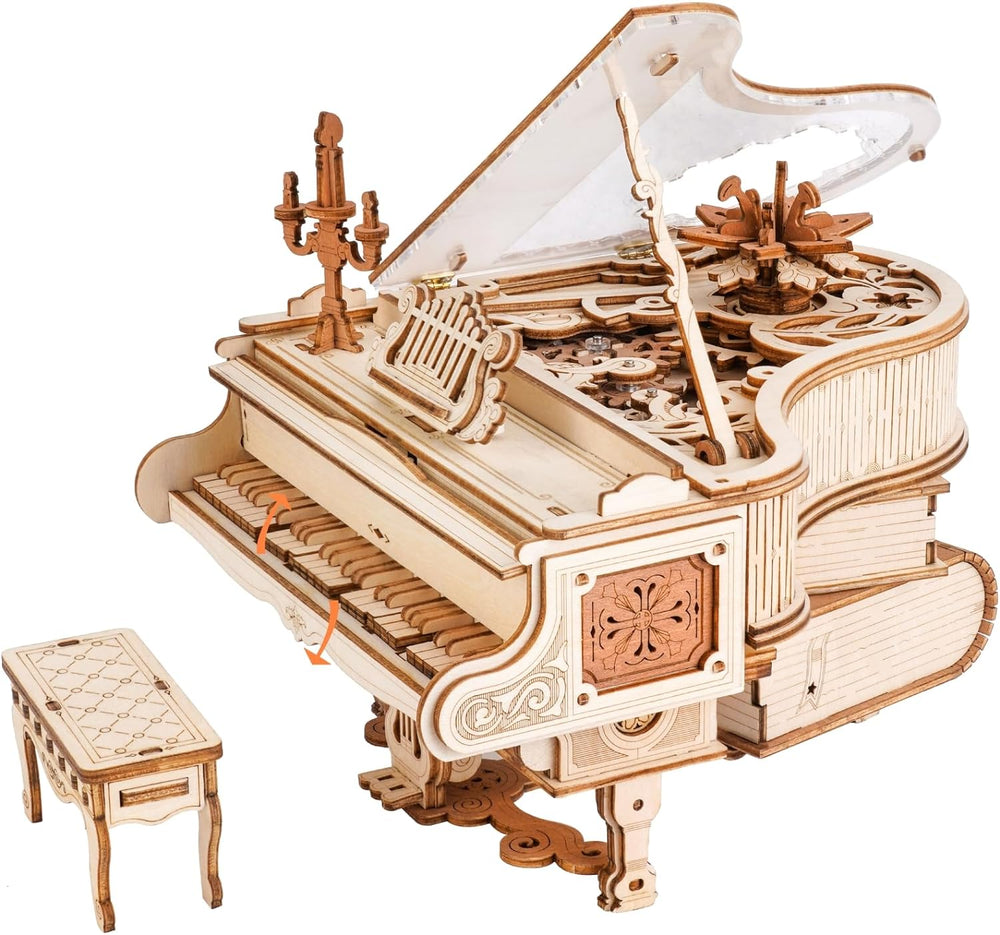 ROBOTIME 3D Puzzle Holz Magic Piano Spieluhr, Modellbausatz für Erwachsene zu Bauen, Getriebe Holzpu