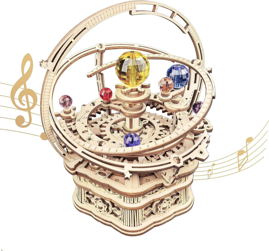 Robotime 3D Holz Puzzle Astronomie Spieluhr Modellbausatz für Erwachsene Mechanische Holzpuzzle Bast