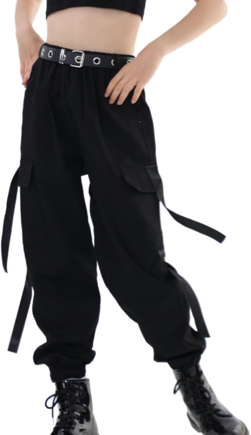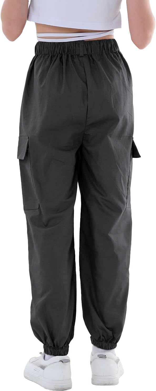 Rolanko Kinder Cargo Hose Elastische Taille Jogger Tanz Hose für Mädchen Streetwear Hip Hop, Eisen G