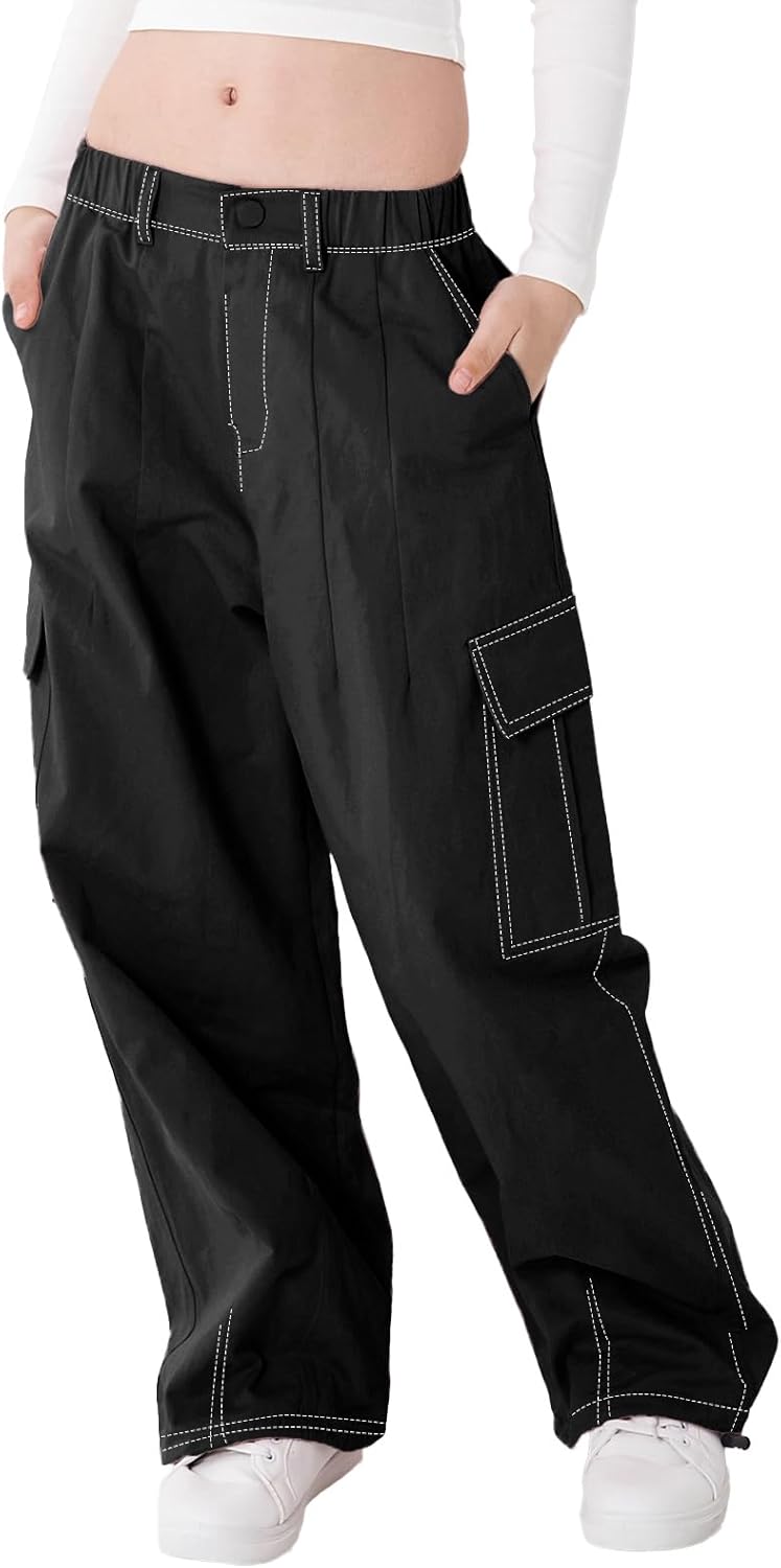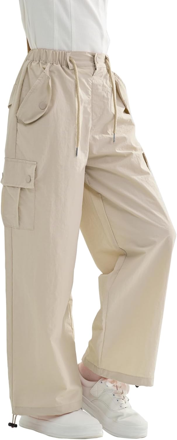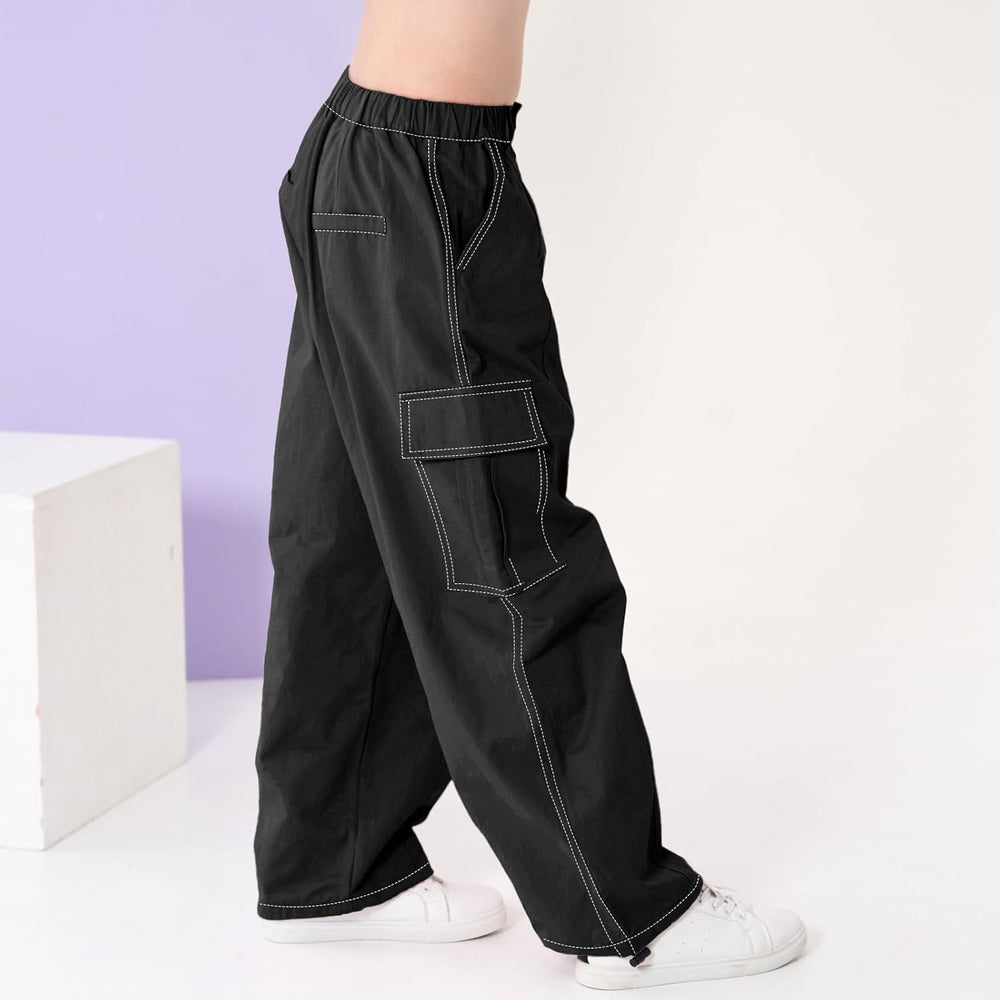 Rolanko Baggy Cargo Fallschirmhose für Mädchen, Y2K Vintage Jogger mit Verstellbarer Elastischer Tai