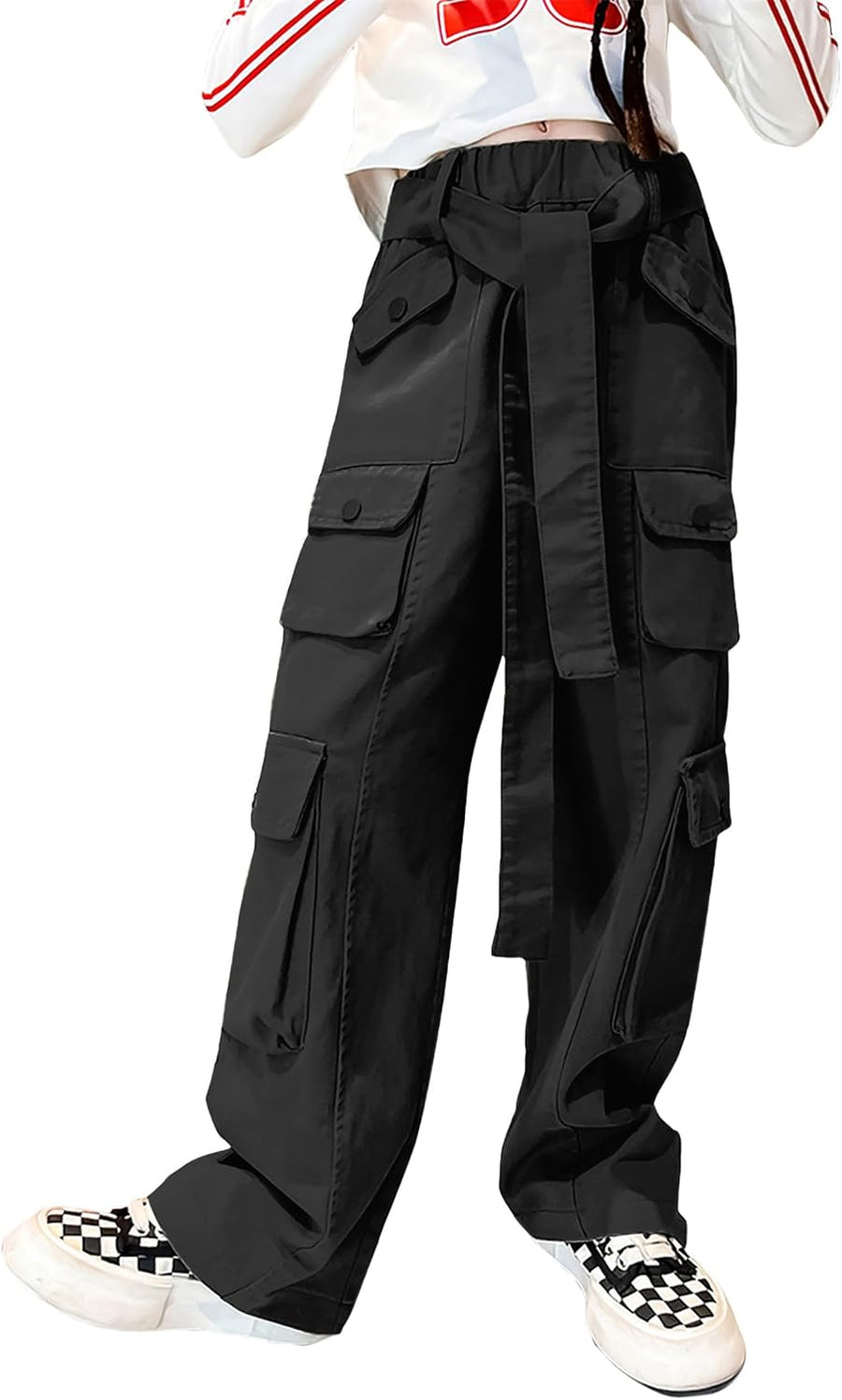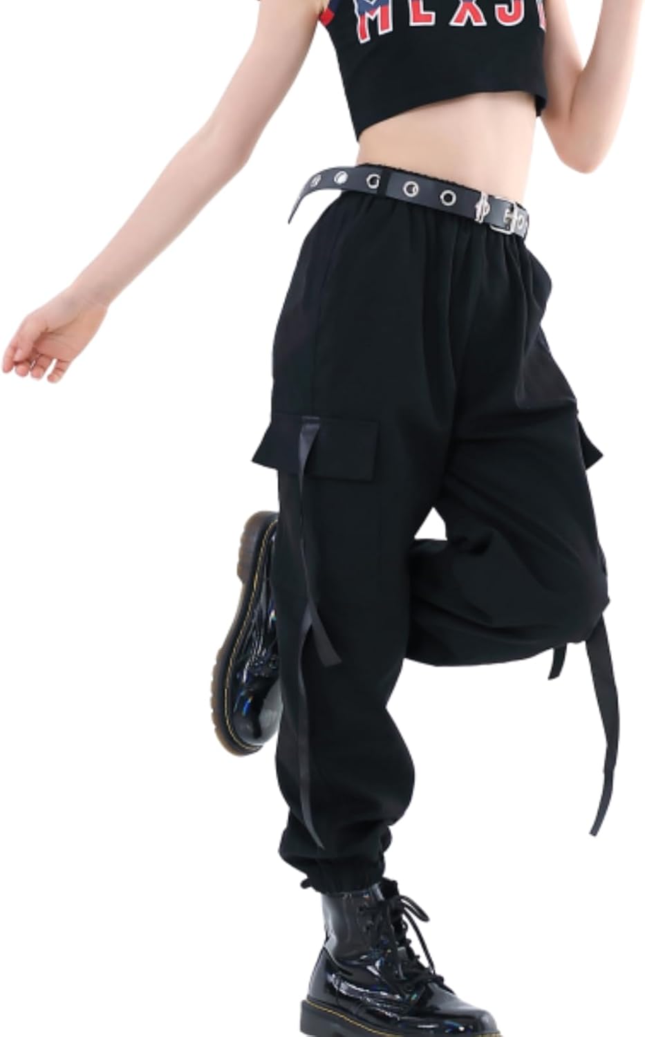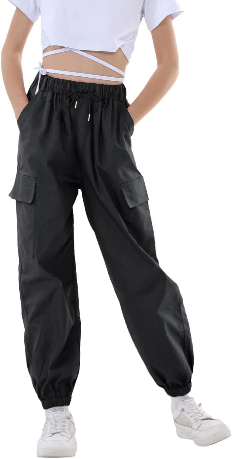 Rolanko Kinder Cargo Hose Elastische Taille Jogger Tanz Hose für Mädchen Streetwear Hip Hop, 122-128