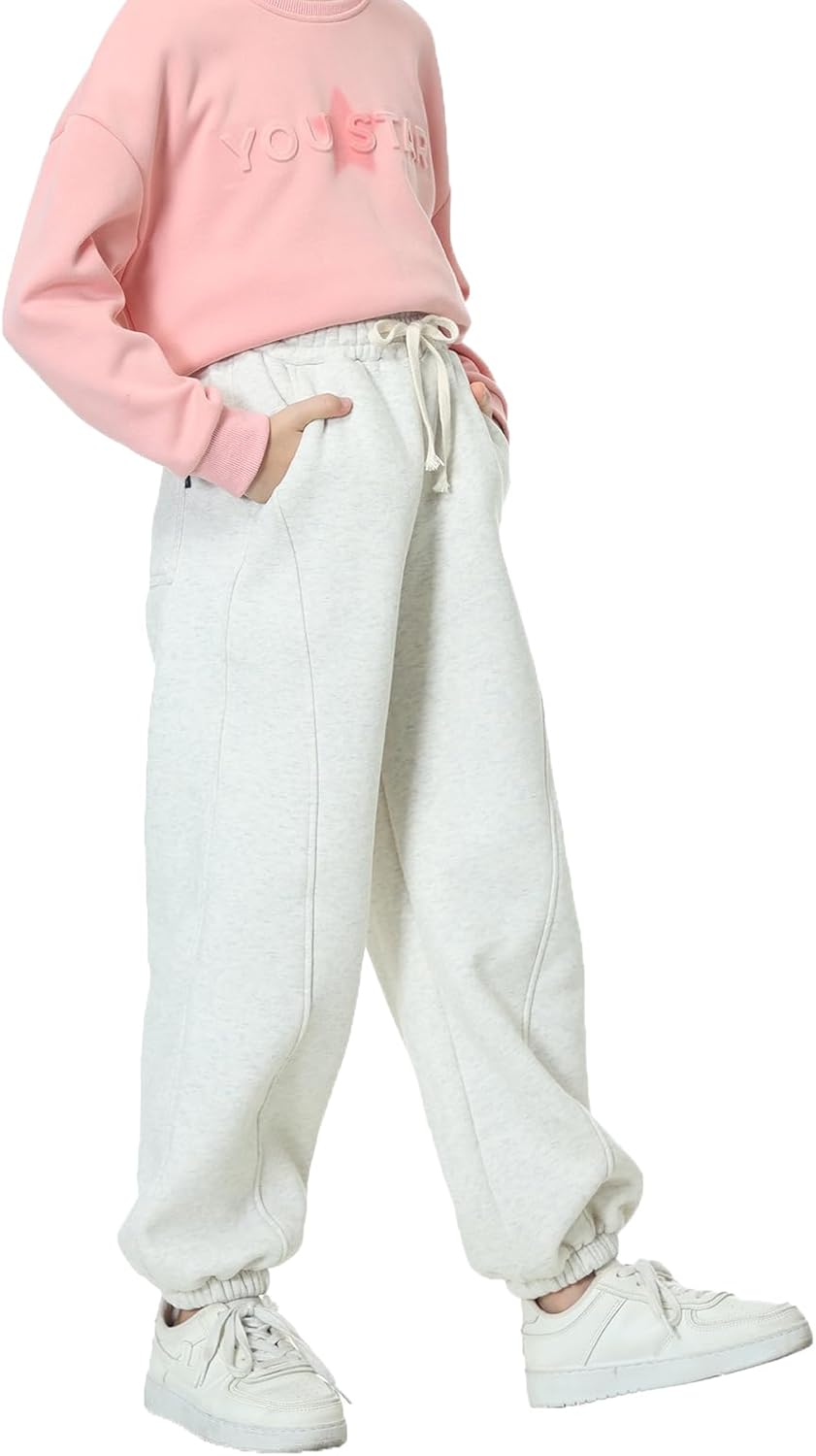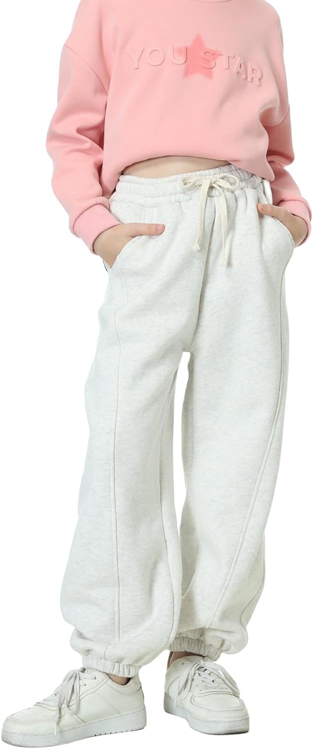 Rolanko Jogging Hose für Mädchen, Baumwoll Fleece Sport Joggers Trainingsanzug mit Mehreren Taschen
