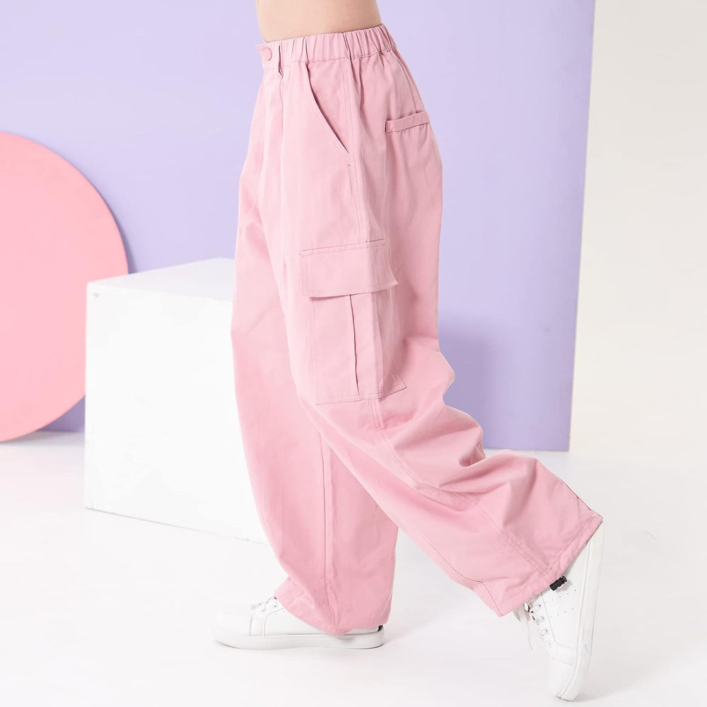 Rolanko Kinder Cargo Hose Elastische Taille Jogger Tanz Hose für Mädchen Streetwear Hip Hop Hellrosa