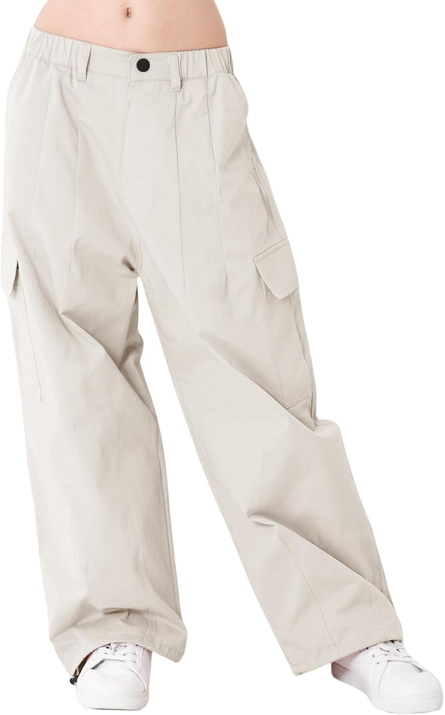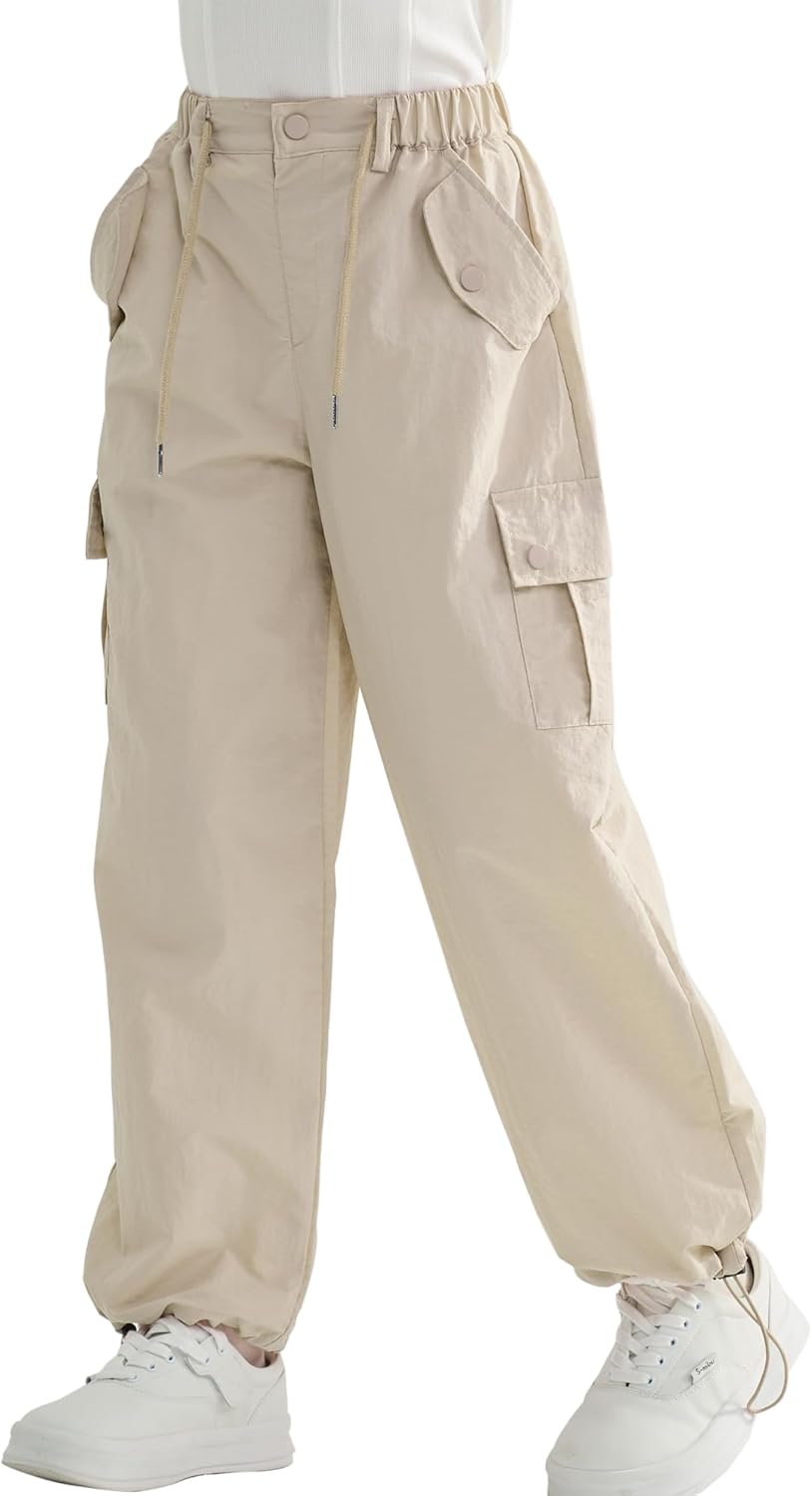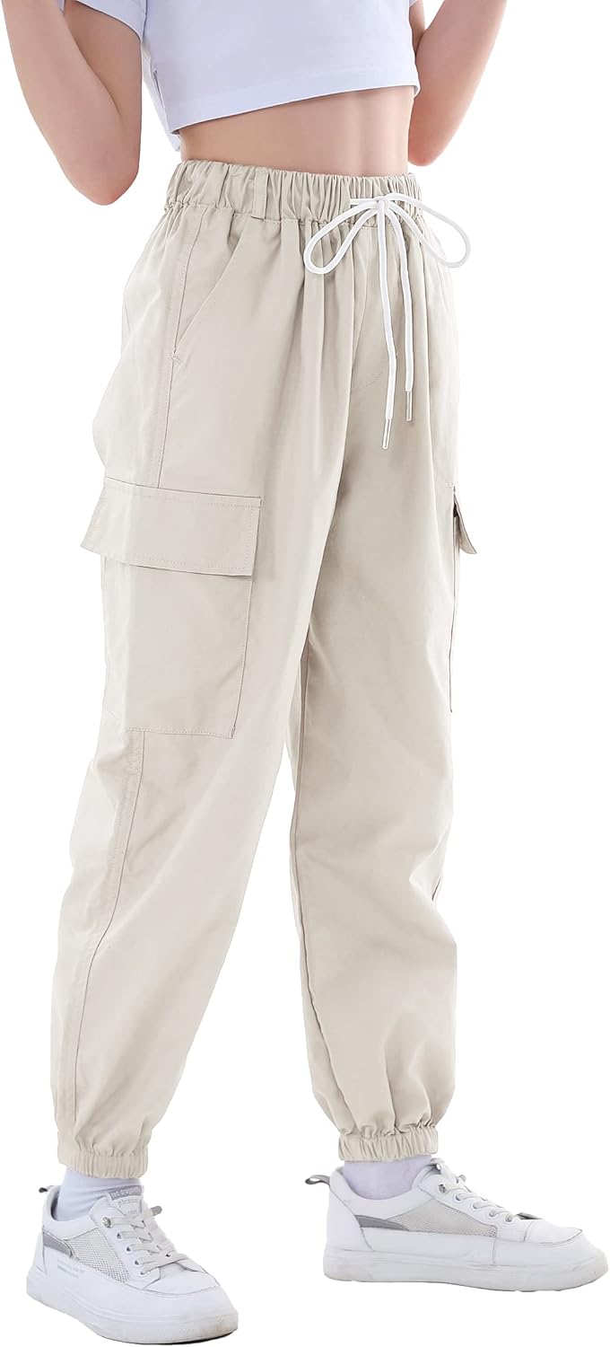 Rolanko Kinder Cargo Hose Elastische Taille Jogger Tanz Hose für Mädchen Streetwear Hip Hop, Beige 1