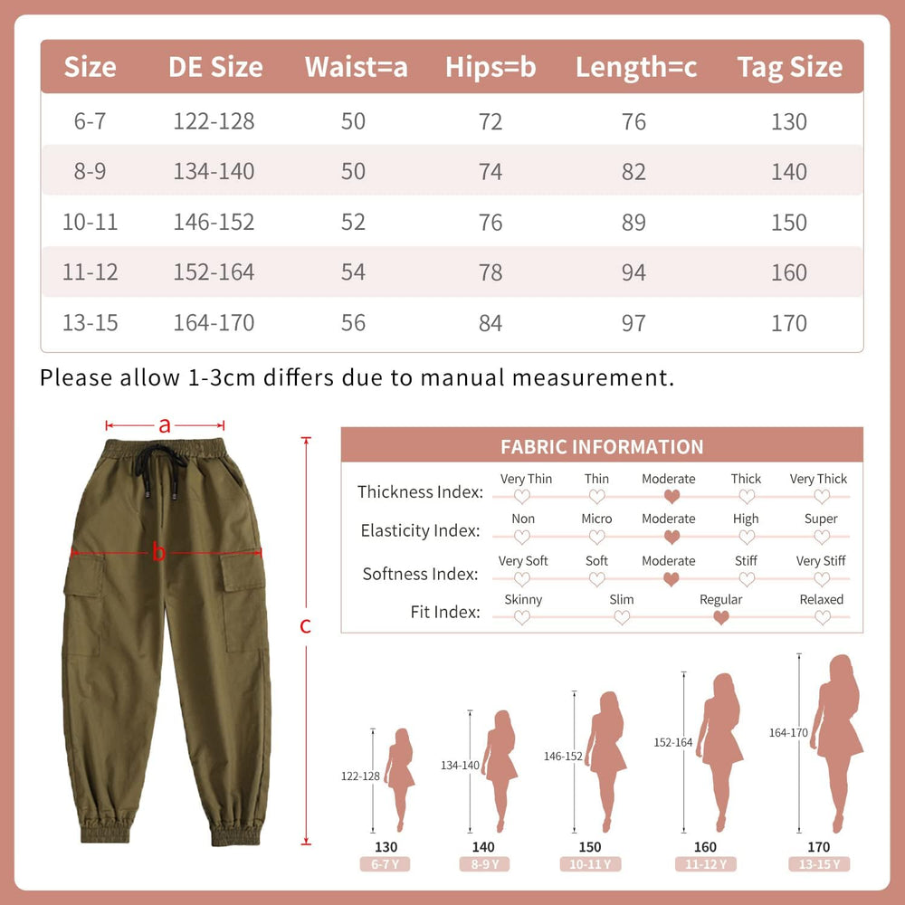 Rolanko Mädchen Cargohose, Baumwoll Baggy Hose mit Elastischer Taille und Mehreren Taschen für Kinde