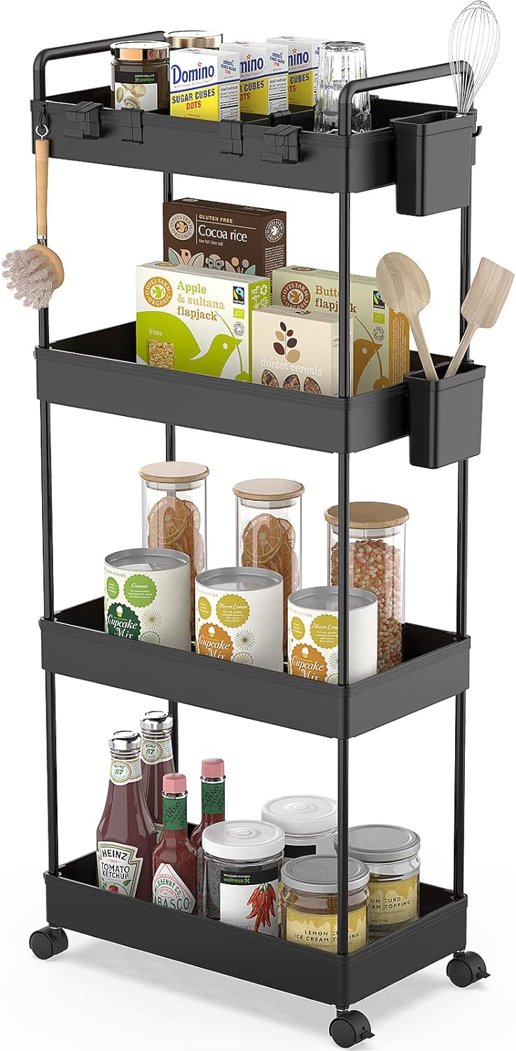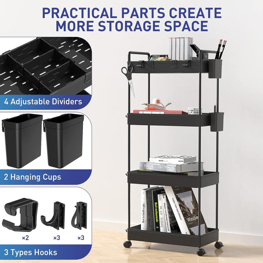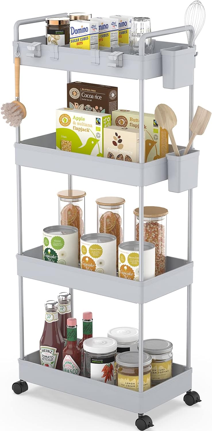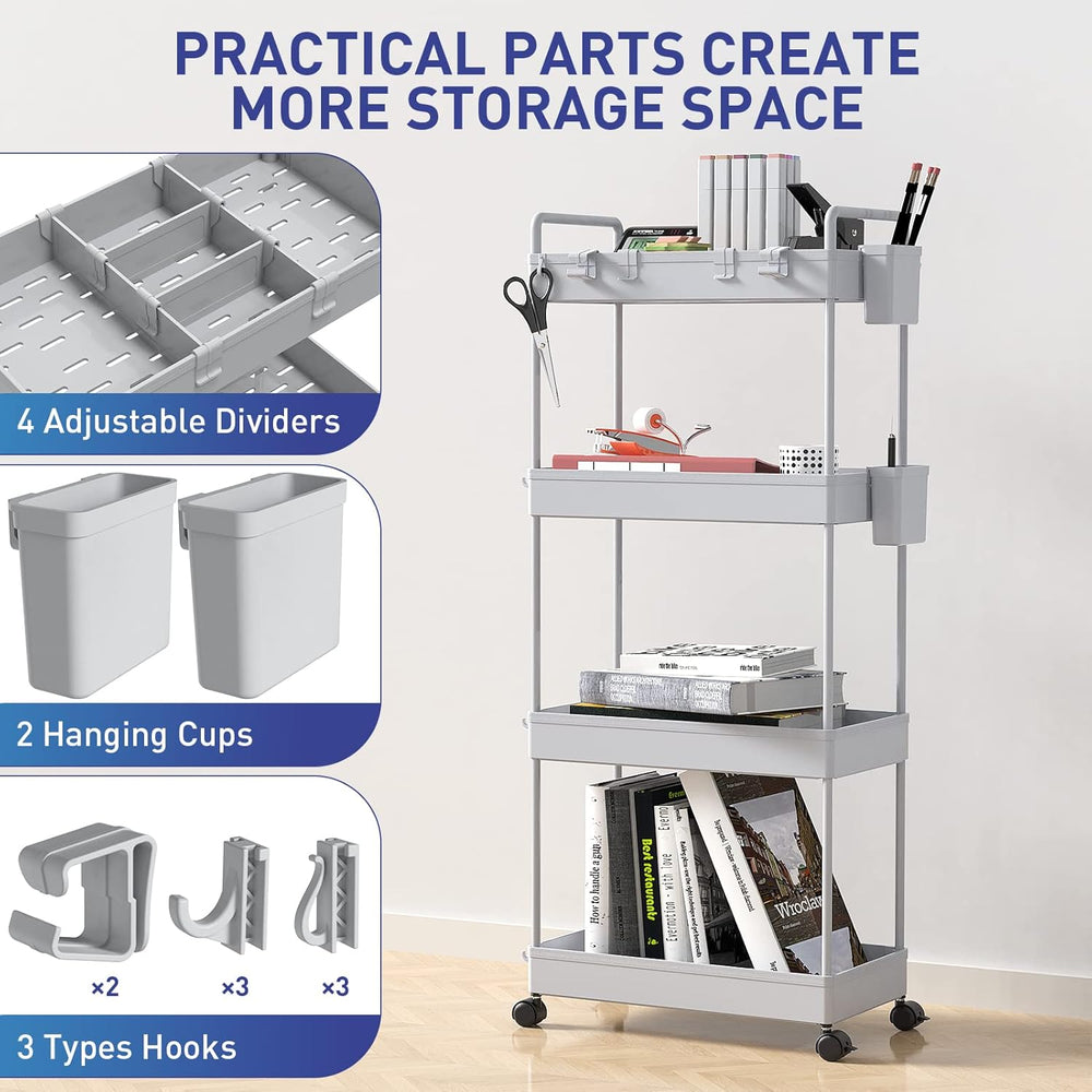 Ronlap Rollwagen Küchewagen mit 4 Ebenen, Servierwagen mit Aufhängebecher, Separator, Haken, Regal a