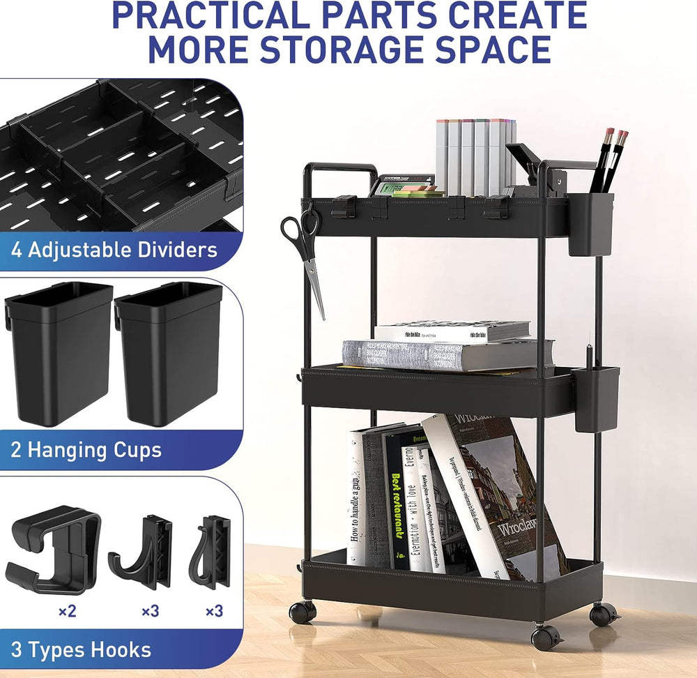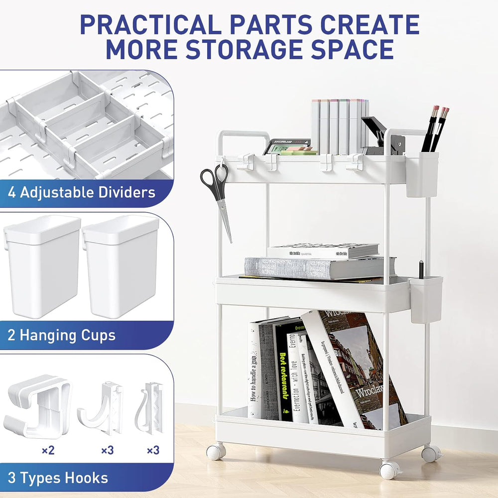 Ronlap Rollwagen Küchewagen mit 3 Ebenen, Servierwagen mit Aufhängebecher, Separator, Haken, Regal a