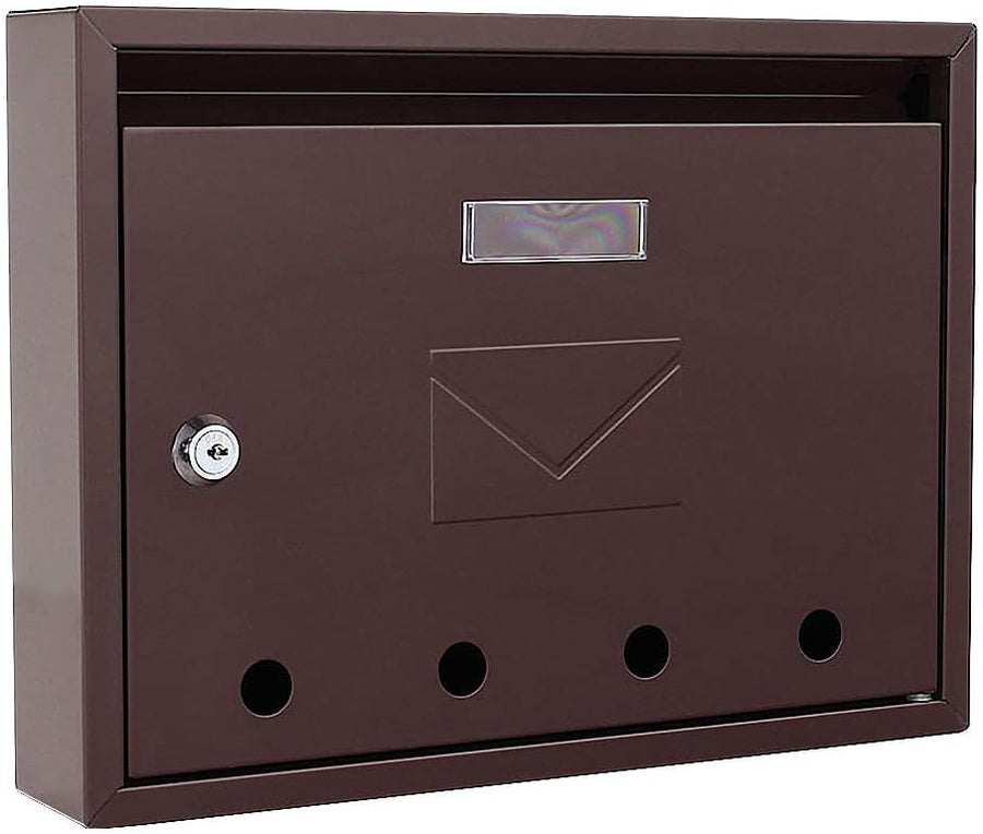 Rottner Briefkasten Imola braun aus pulverbeschichtetem Stahlblech mit Einwurfschlitz, Namensschild