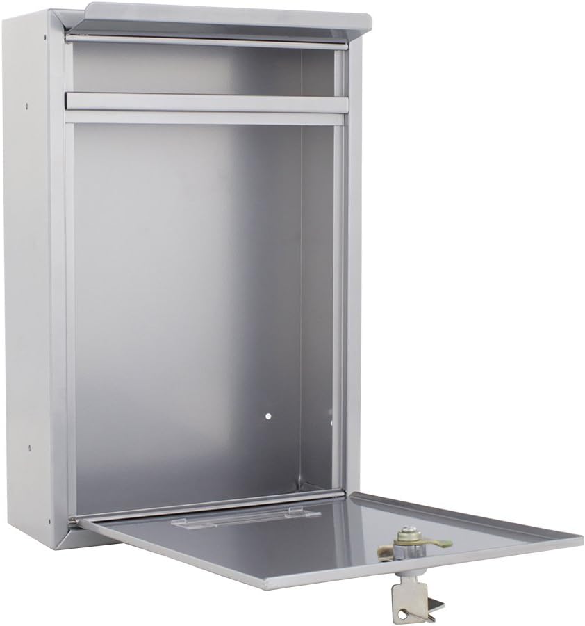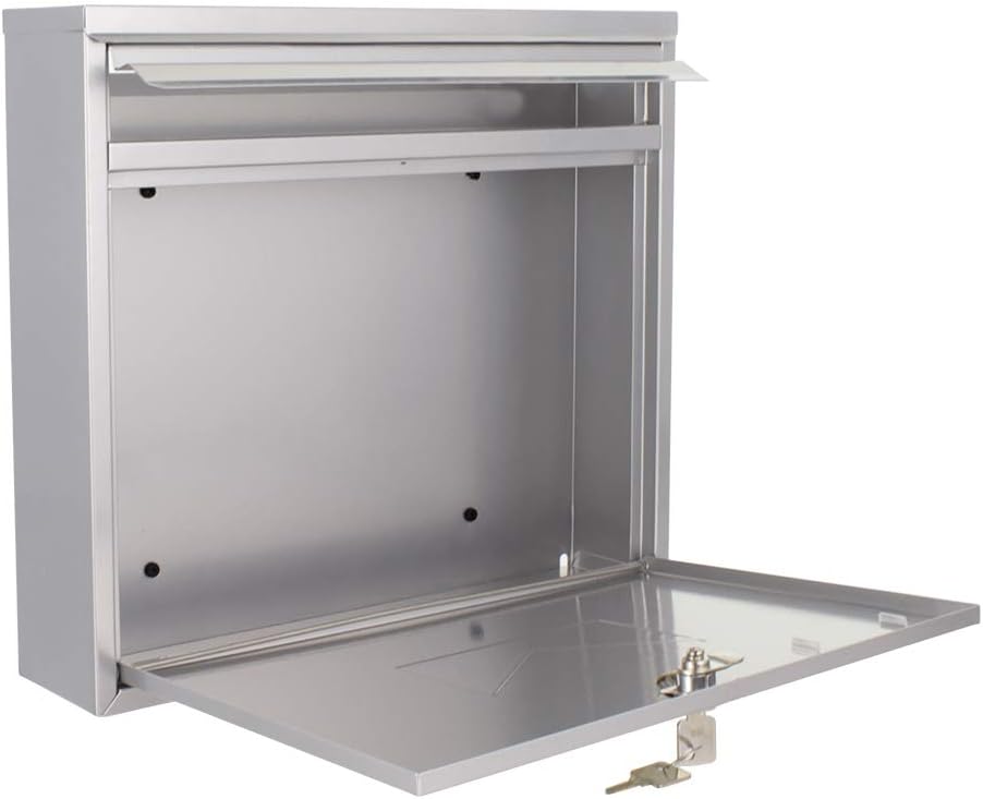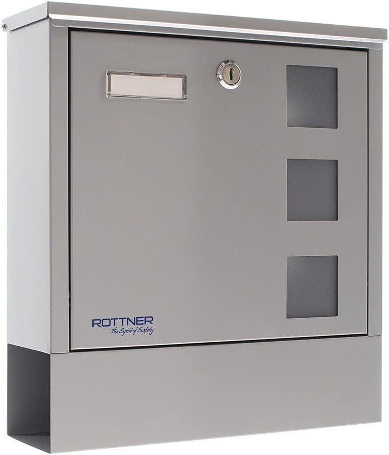 Rottner Briefkasten Lago Silver, Zylinderschloss mit 2 Schlüssel, Stahl, BxH 305x330 mm, Befestigung
