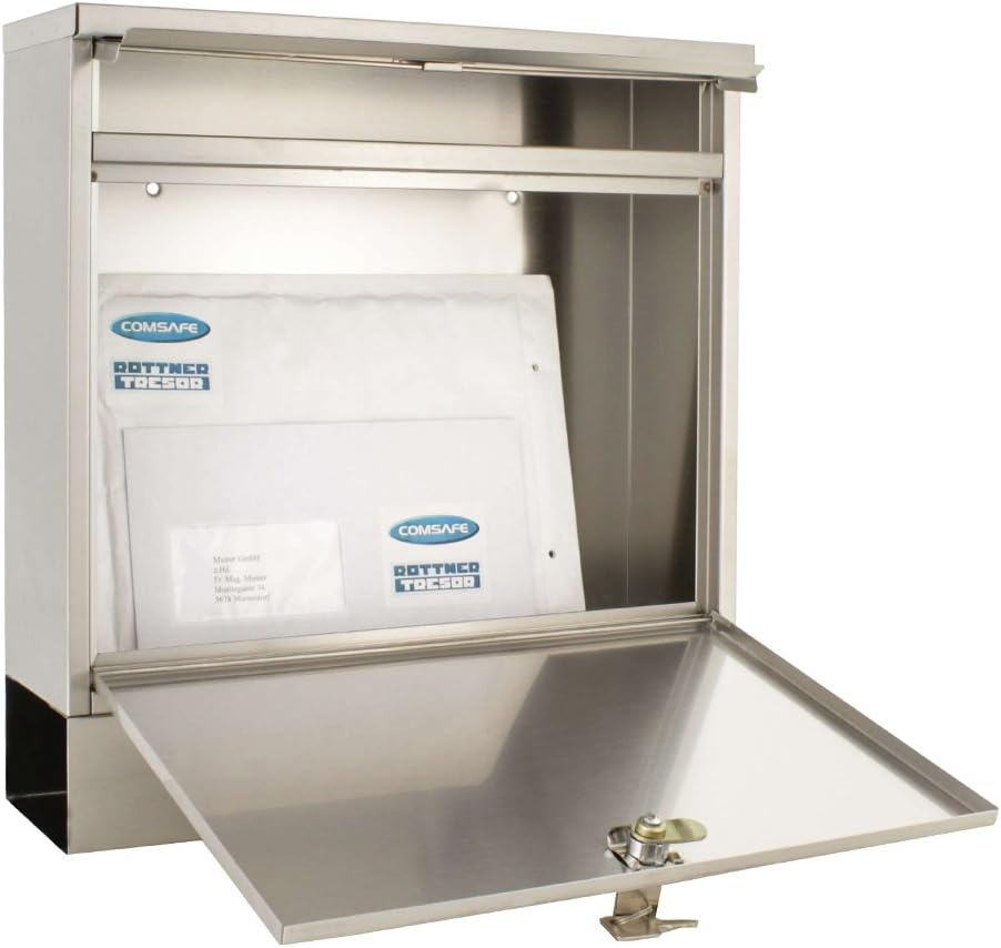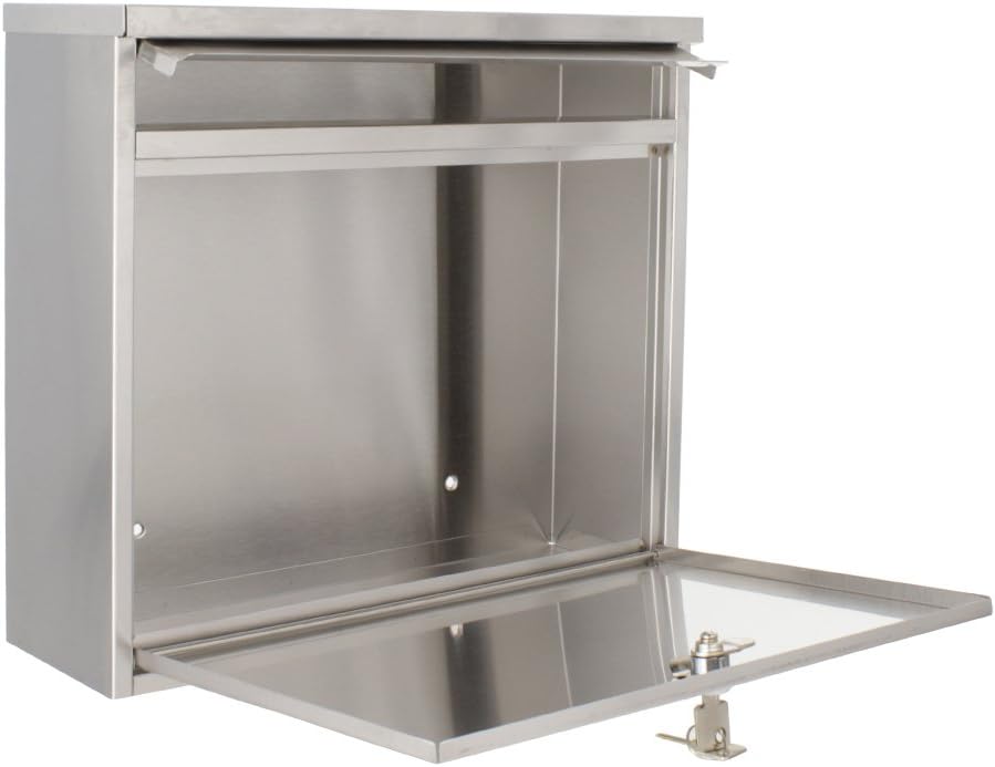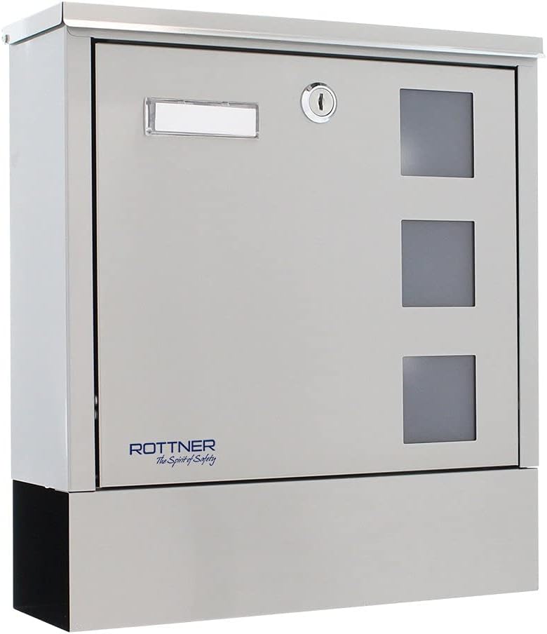 Rottner 158 Briefkasten Hochhaus II, Zylinderschloss mit 2 Schlüssel, Edelstahl, BxH 360x315 mm, Bef