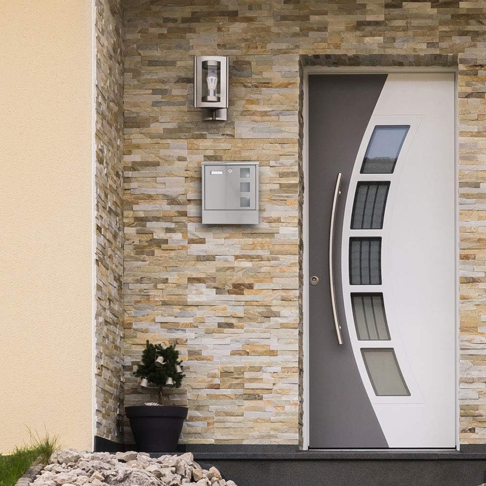 Rottner Briefkasten Brighton, Zylinderschloss mit 2 Schlüssel, Edelstahl, BxH 310x400 mm, Befestigun
