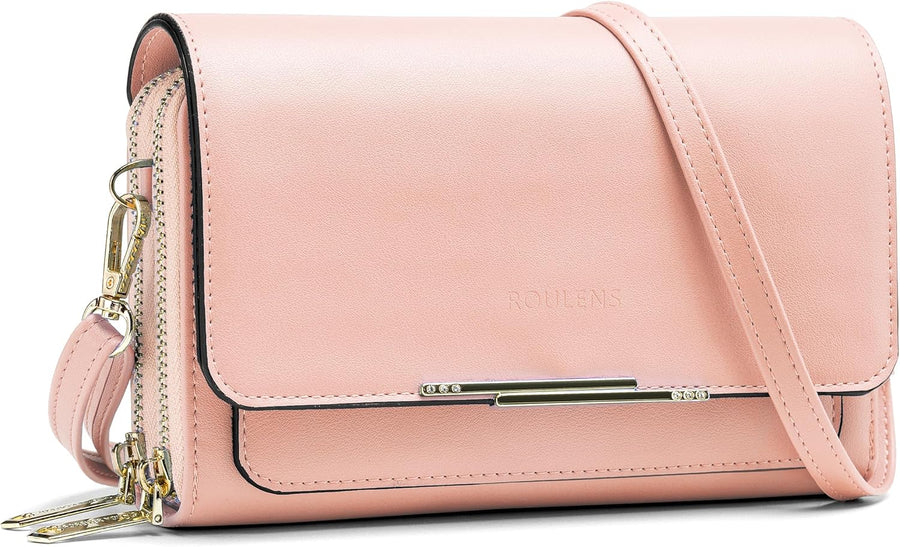 Roulens Damen Handy Umhängetasche,Veganem Leder Crossbody Schultertasche,Breiter Riemen Abendtasche