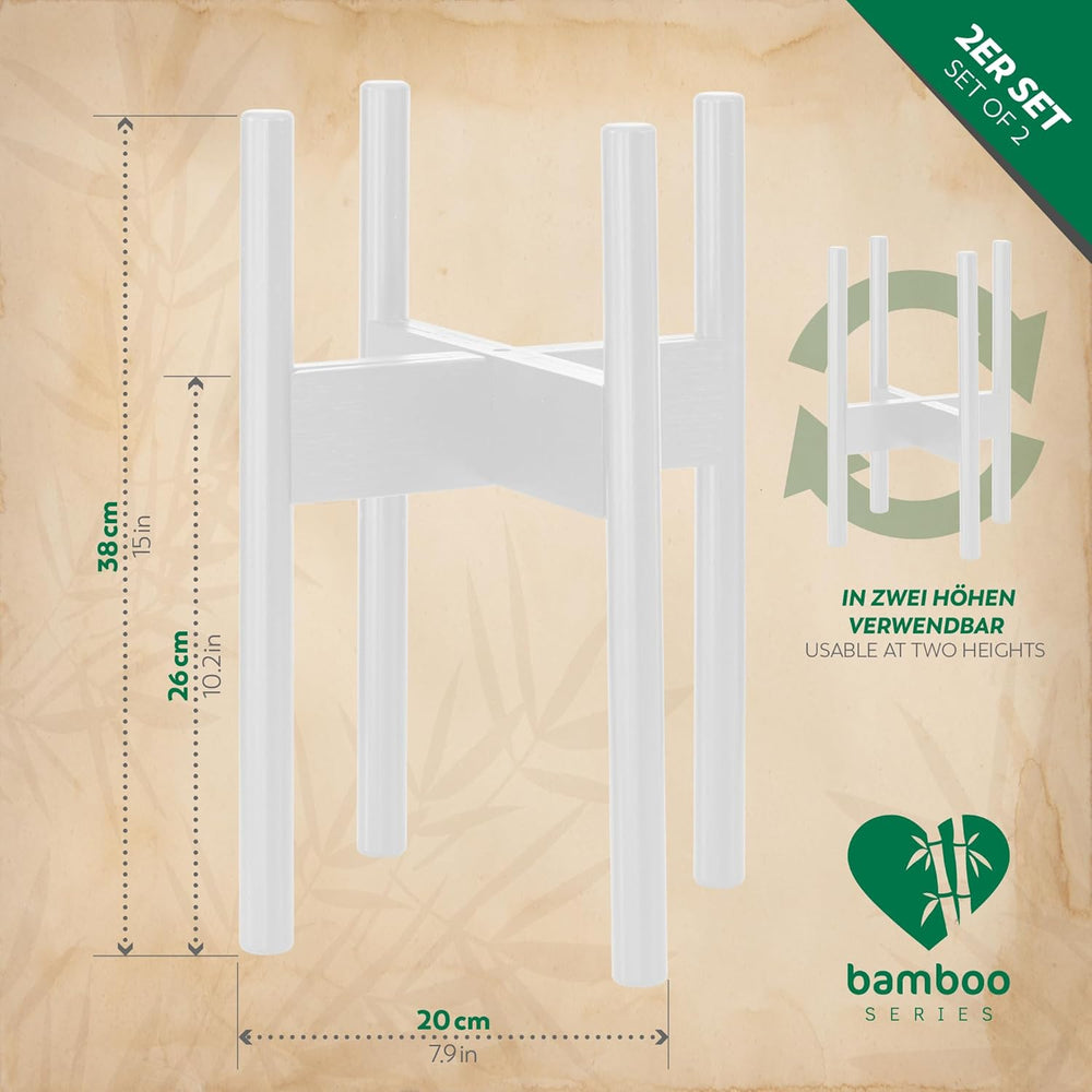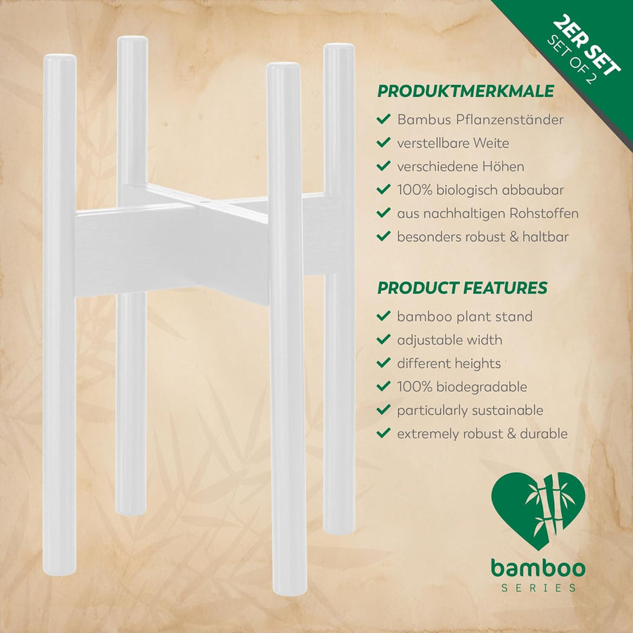 Rubberneck 2er Set Bambus Pflanzenständer - Verstellbare Blumentopfständer aus Bambusholz für den In