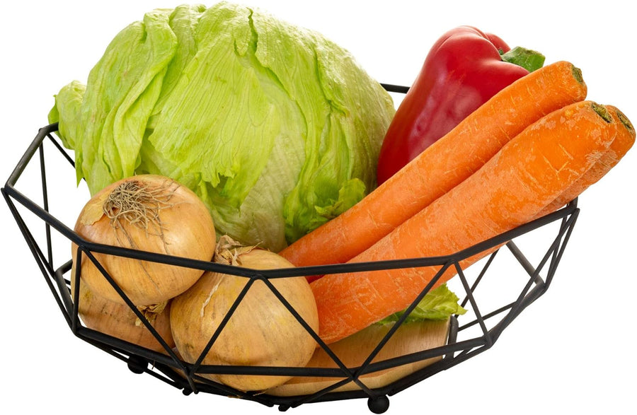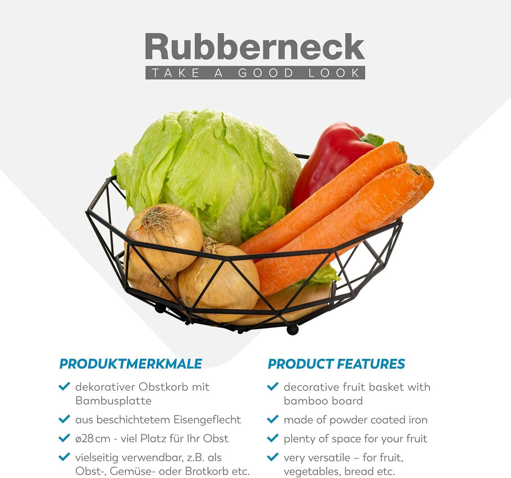 Rubberneck Obstkorb mit Holzboden aus Metall in Schwarz - Moderne Obstschale mit Holz Einsatz für Kü