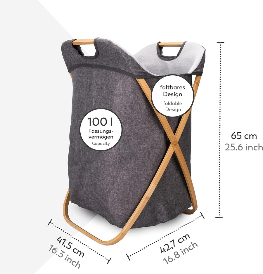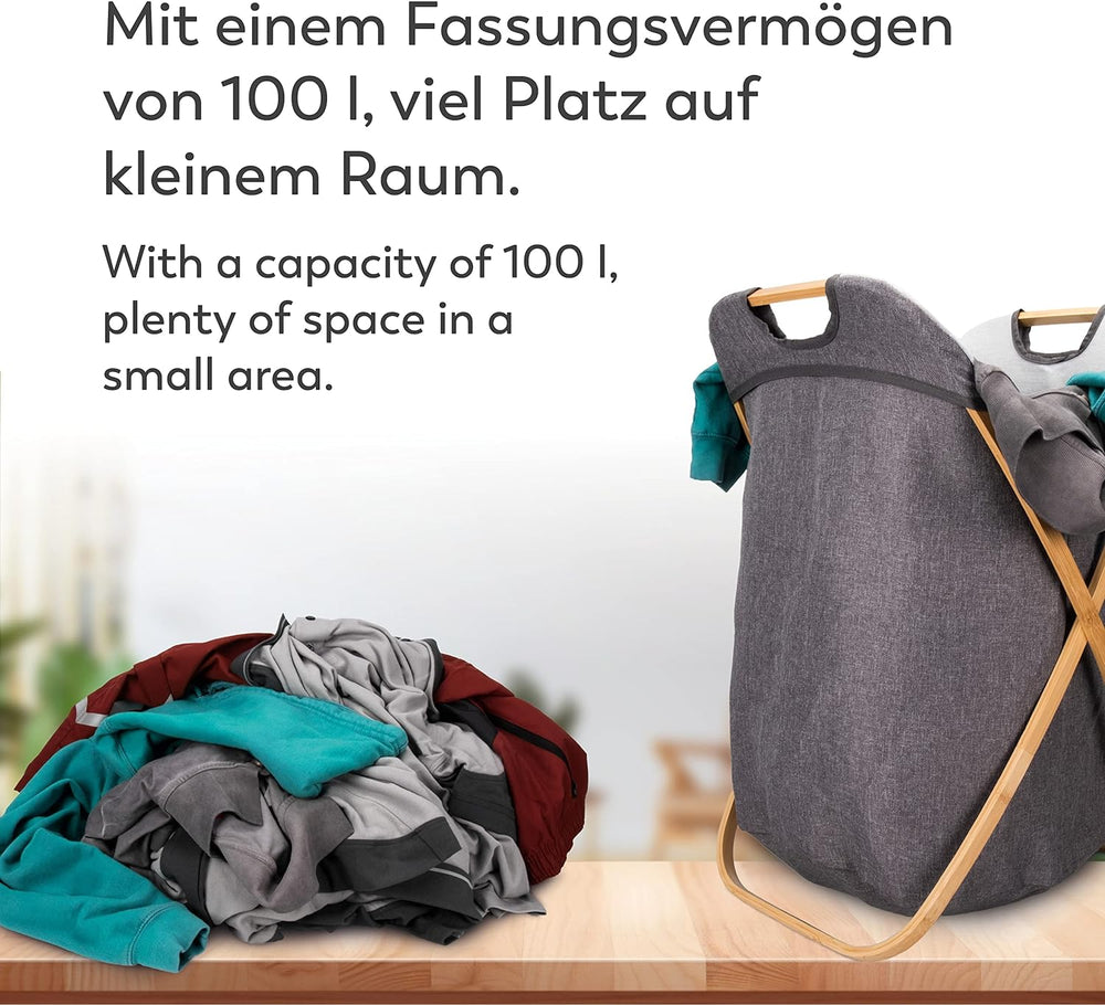 Rubberneck Wäschekorb aus Bambus - XXL Wäschesammler faltbar - 100 Liter