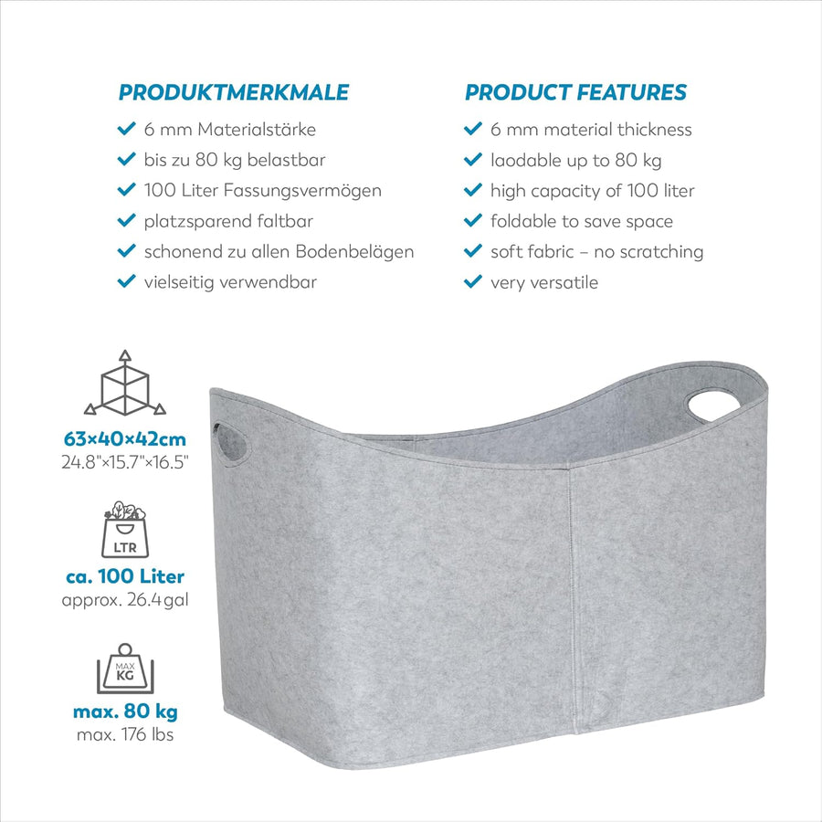 Rubberneck Kaminholztasche Gross XXL - Filz Aufbewahrungtasche für Kaminholz, Zeitungen - Masse 63 x
