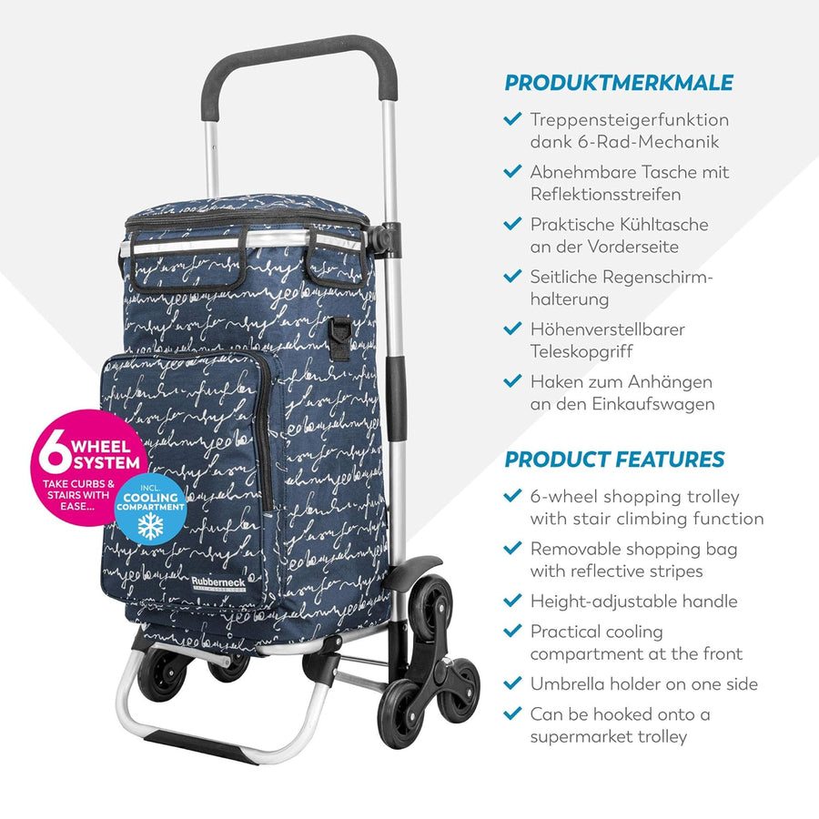 Rubberneck Einkaufstrolley - Klappbarer Einkaufswagen - Kühlfach - Höhenverstellbarer Griff - Blau,
