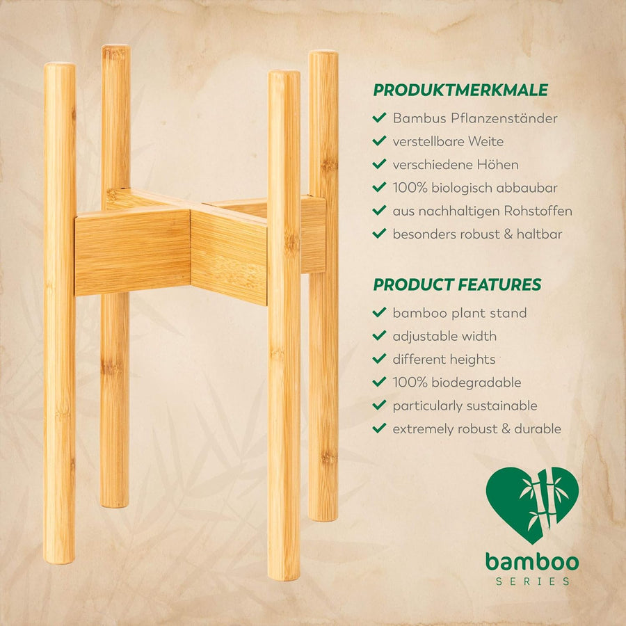 Rubberneck Bambus Pflanzenständer - Verstellbare Blumentopfständer aus Bambusholz für den Innen- und