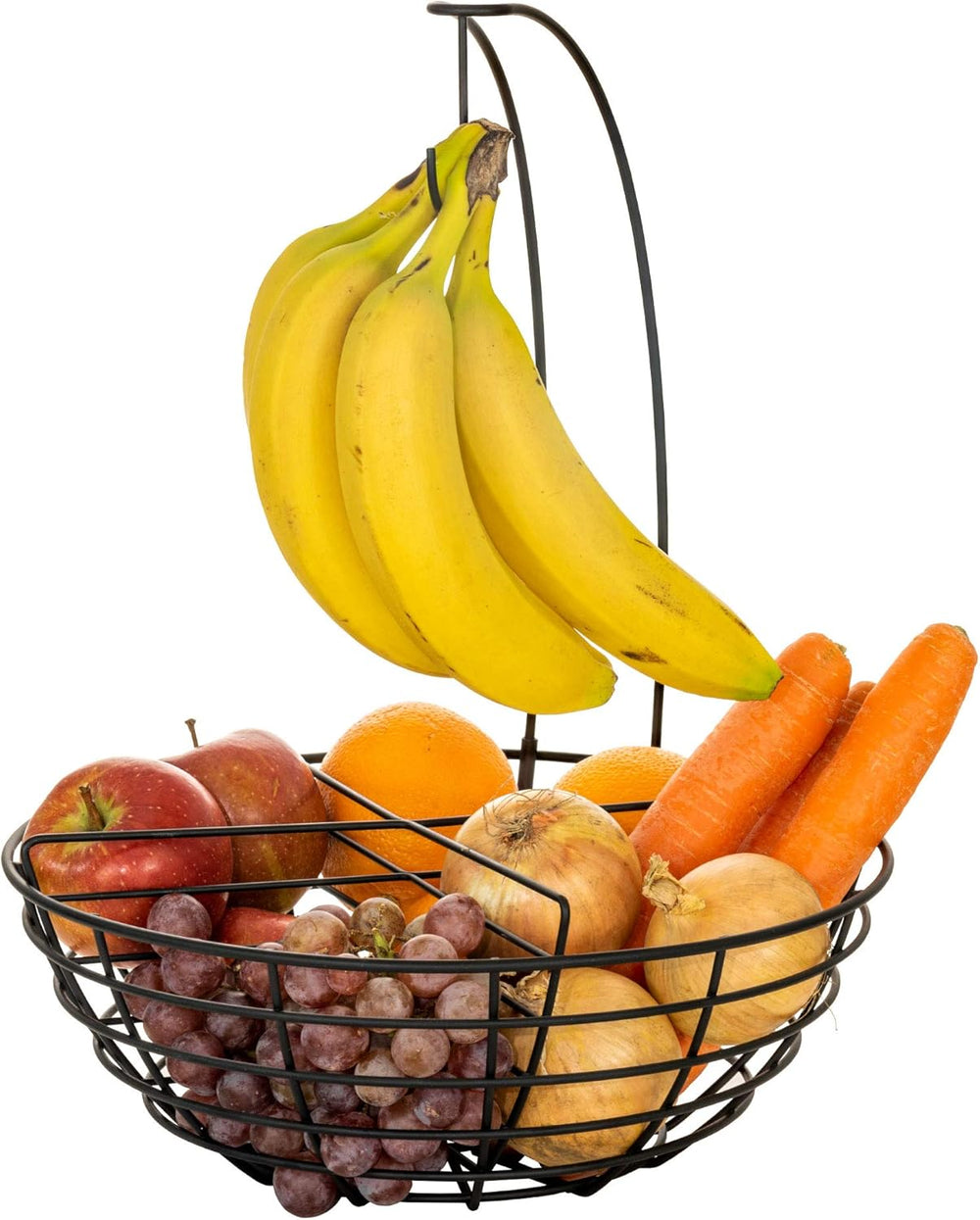 Rubberneck Obstkorb mit Bananenhaken aus Metall - moderne Obstschale mit herausnehmbarer Trennwand u